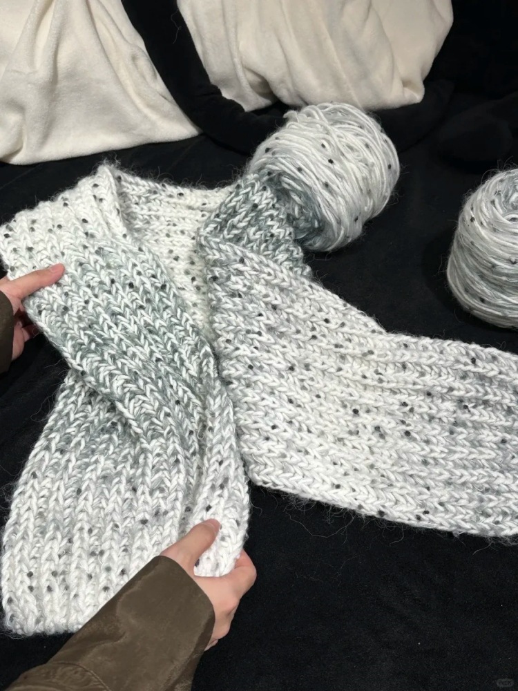 • 그라데이션 흑백(긴 스타일) + 뜨개질 도구 + 튜토리얼