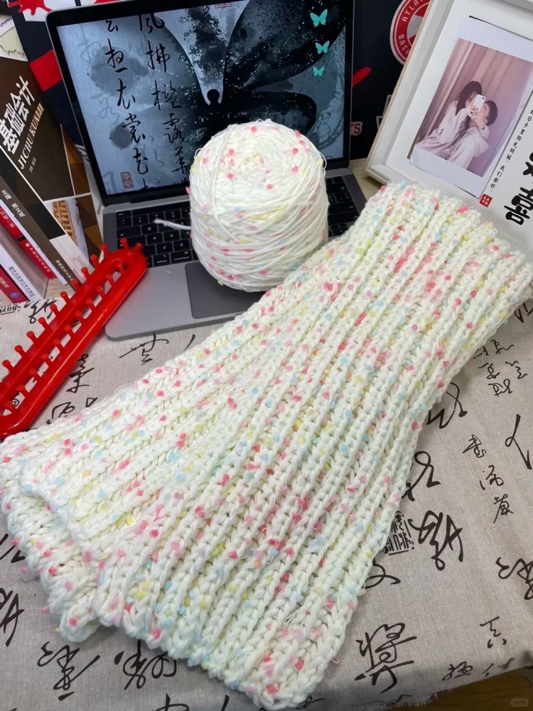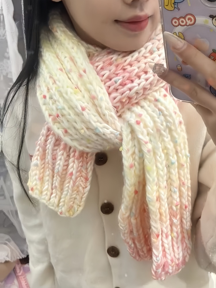 • 화이트 핑크 그라데이션 컬러(롱 스타일) + 뜨개질 도구 + 튜토리얼