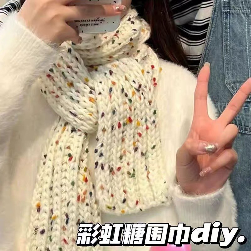 무지개 사탕 그라디언트 울 스카프 손으로 짠 DIY 소재 가방 여자 친구 선물을위한 손으로 짠스토어 가기
