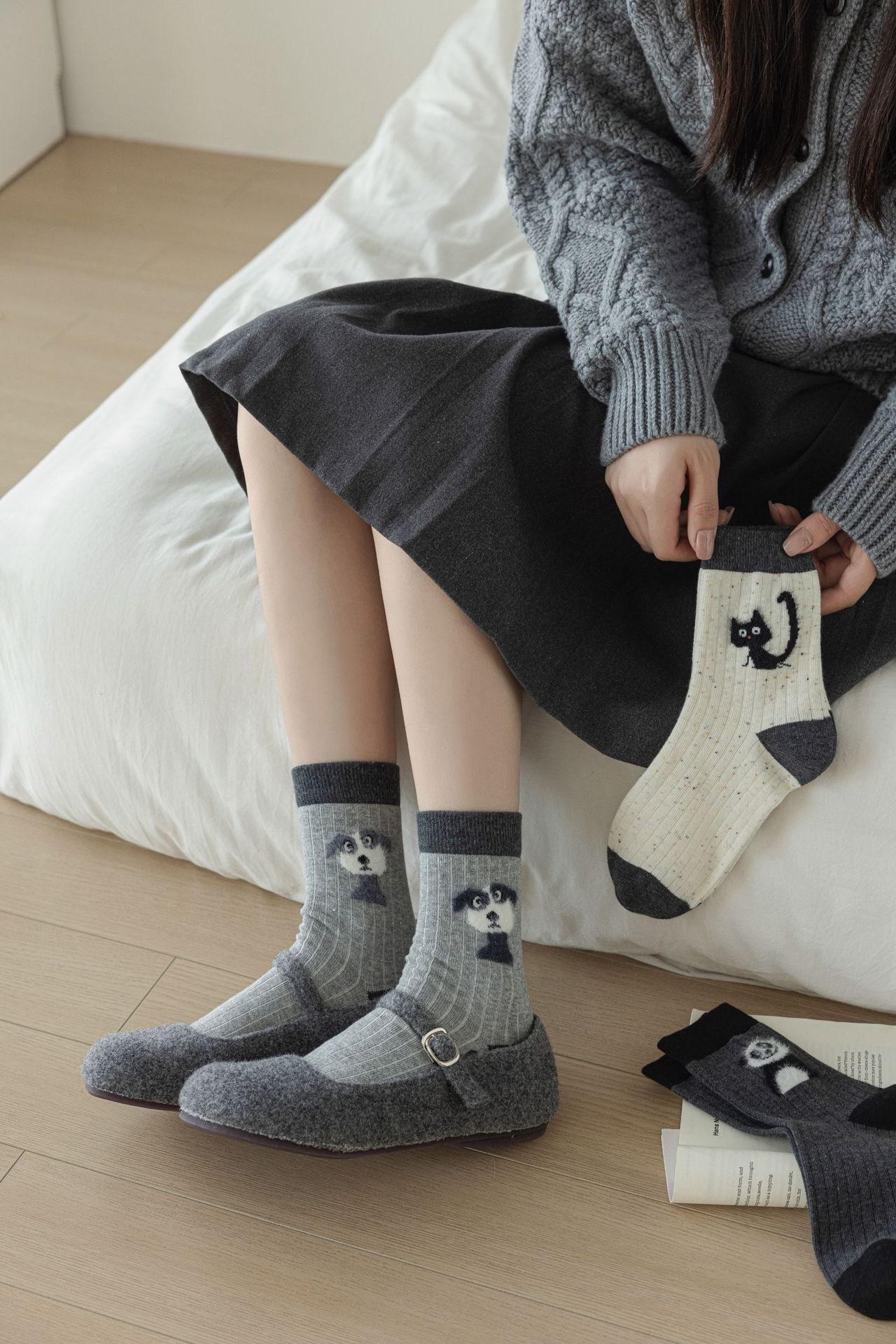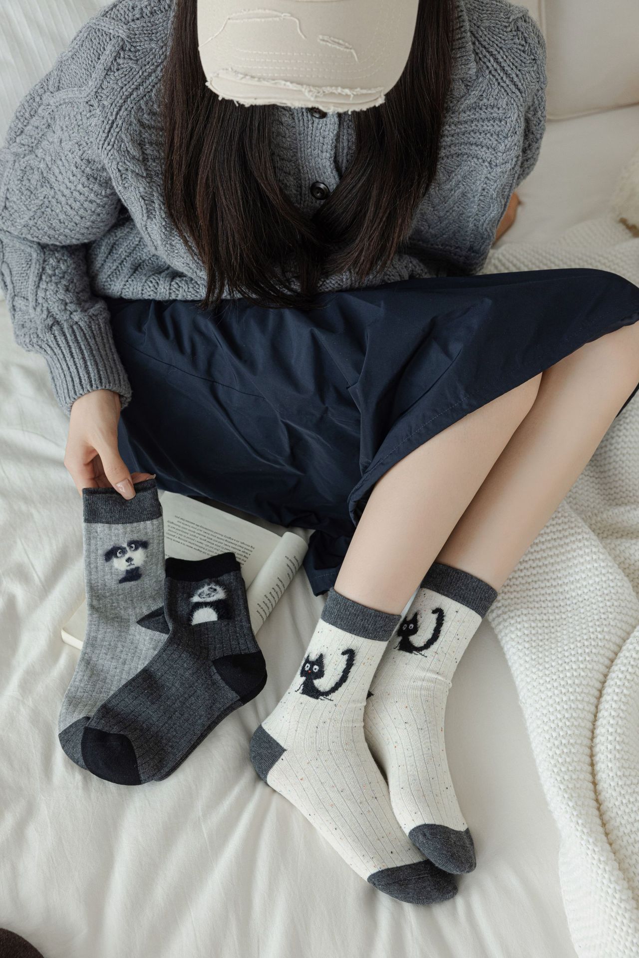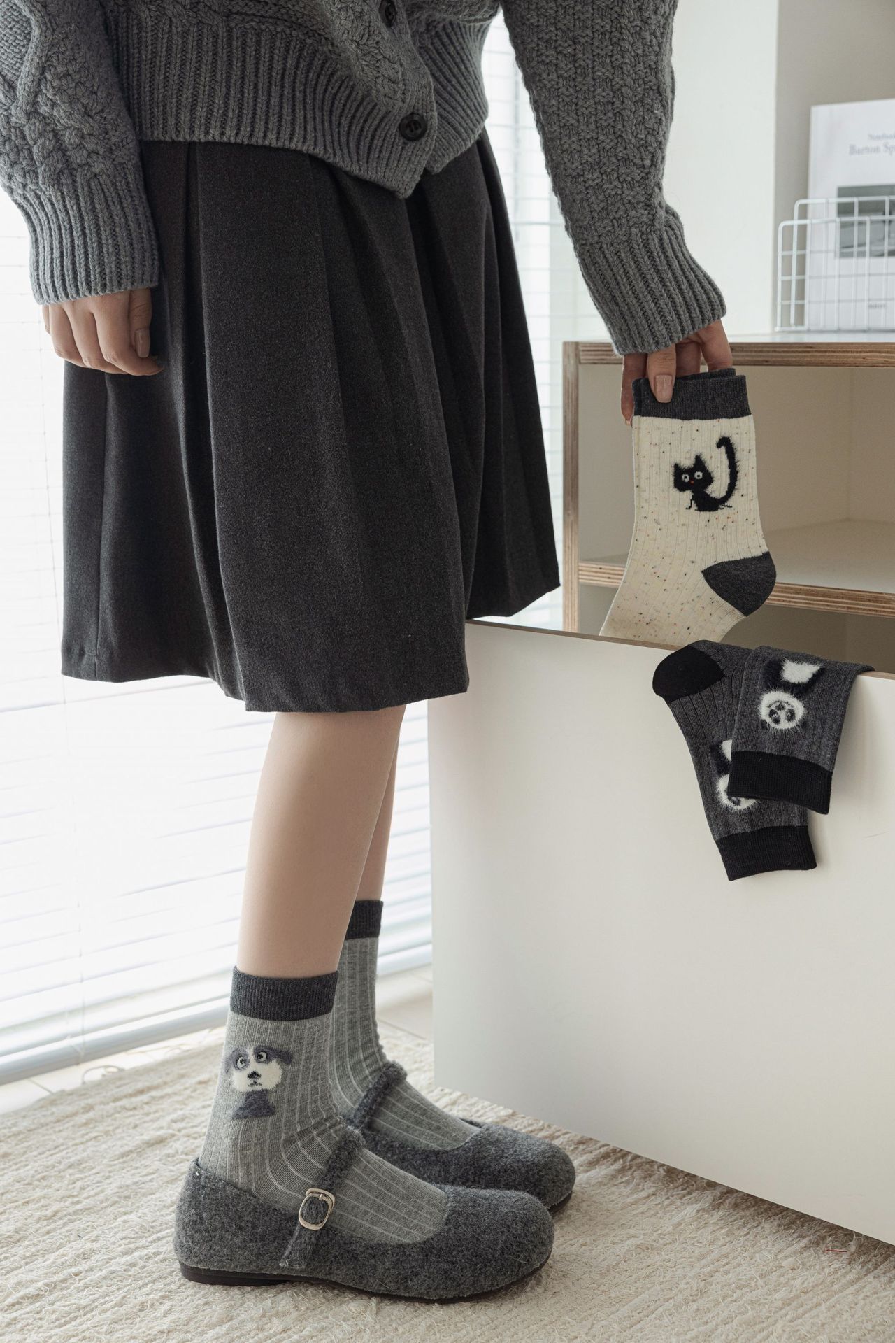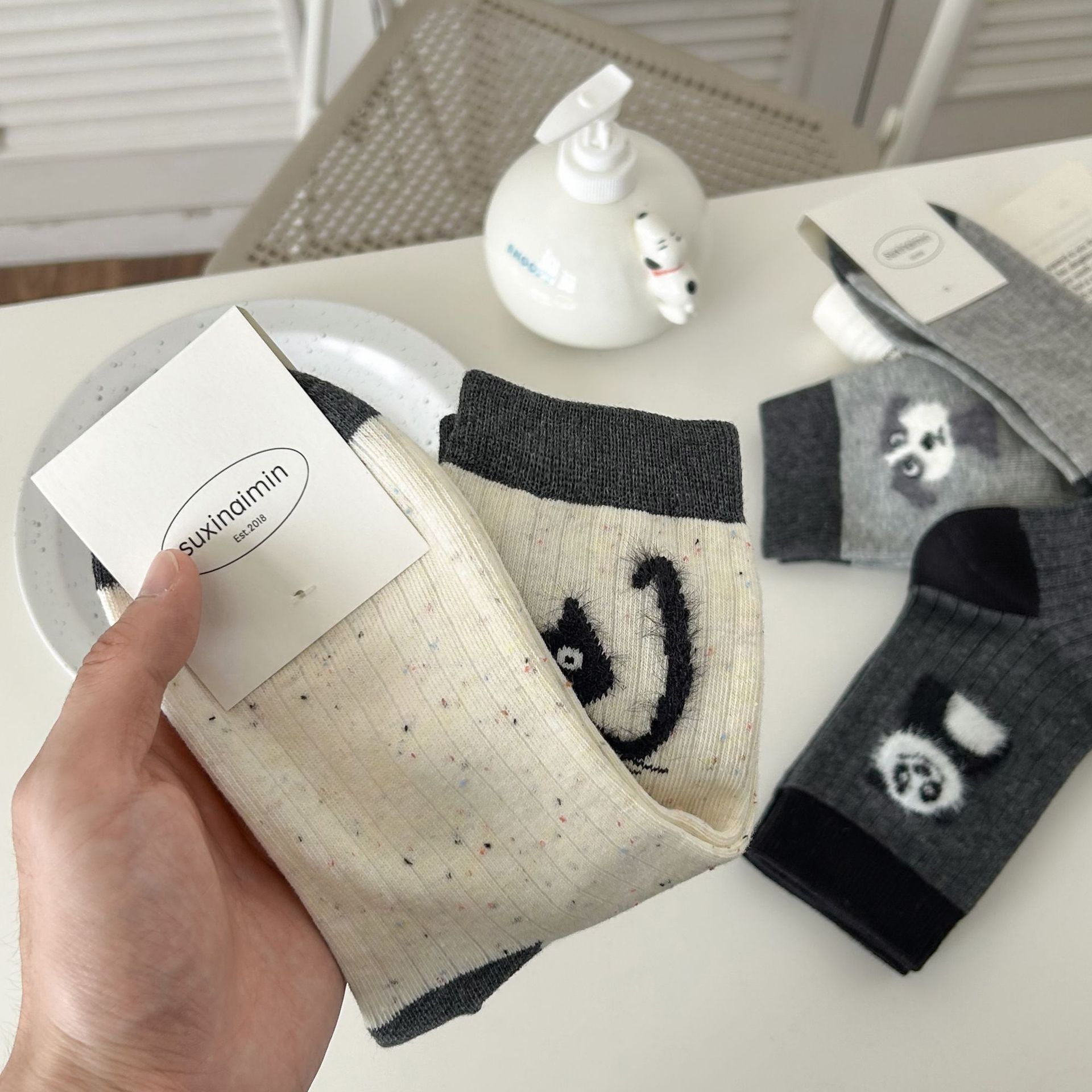 양말 여성의 가을과 겨울 회색 귀여운 동물 입체 느낌 작은 우유 개 양말을 쌓은면 양말스토어 가기