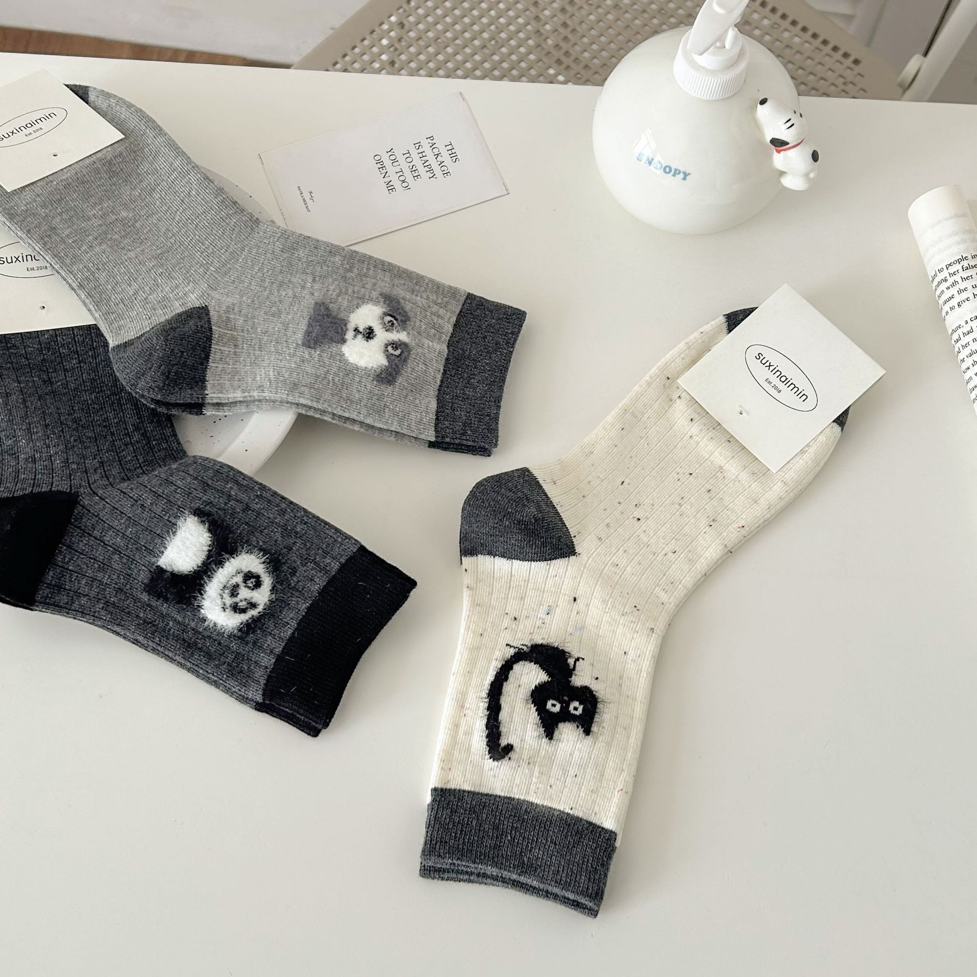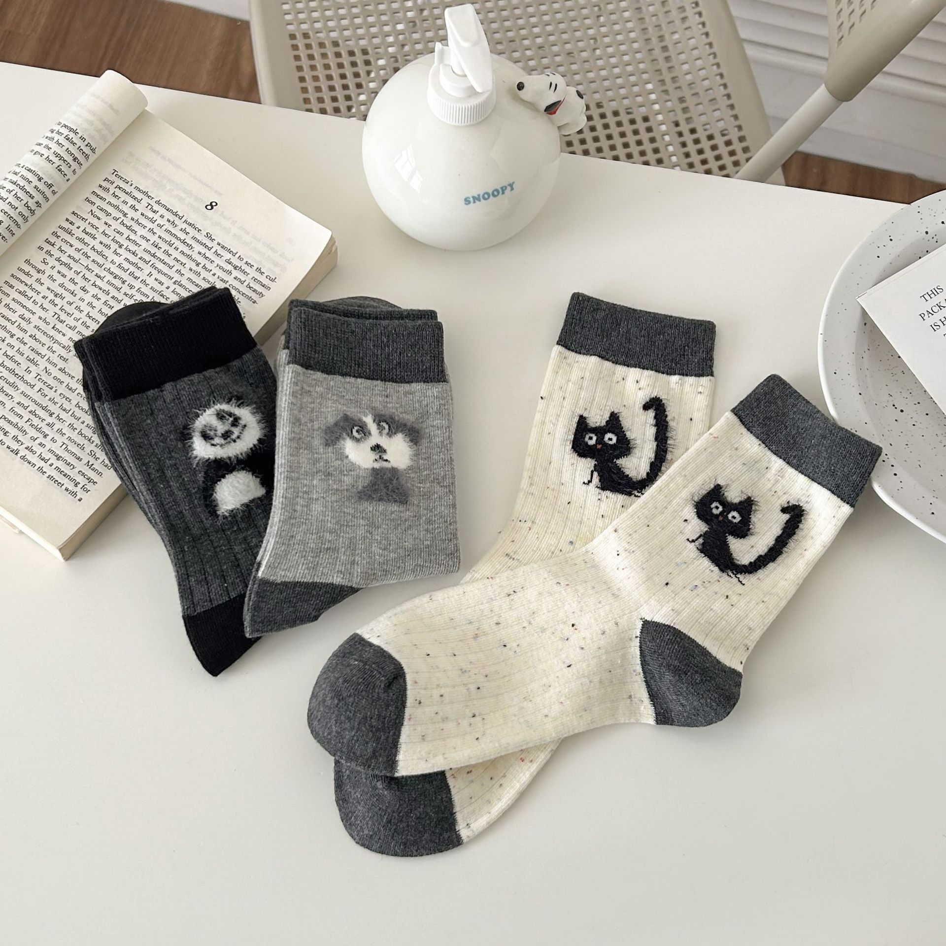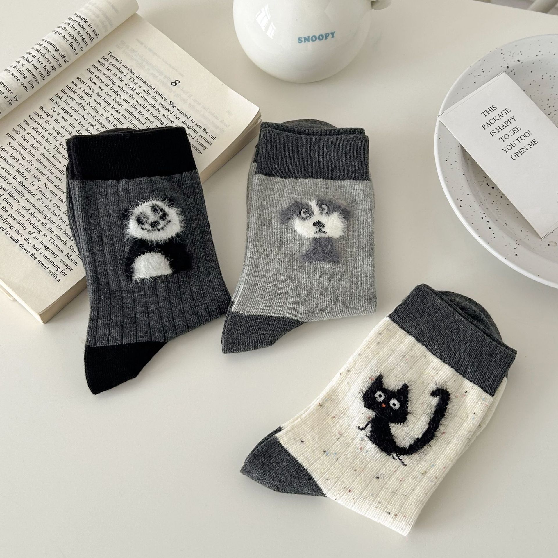 양말 여성의 가을과 겨울 회색 귀여운 동물 입체 느낌 작은 우유 개 양말을 쌓은면 양말스토어 가기