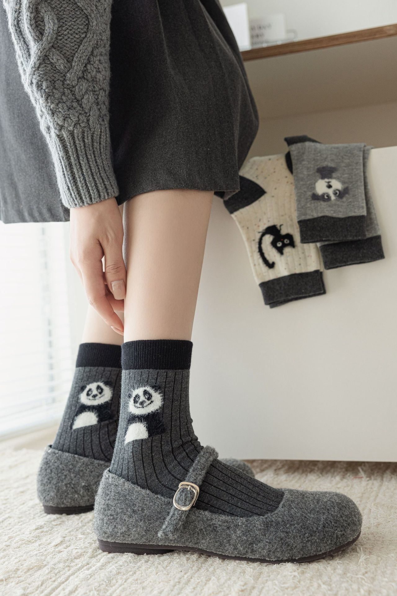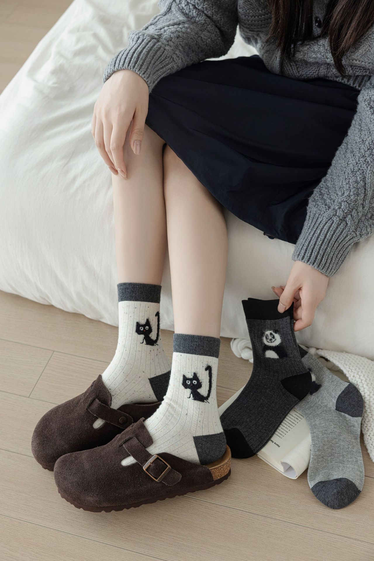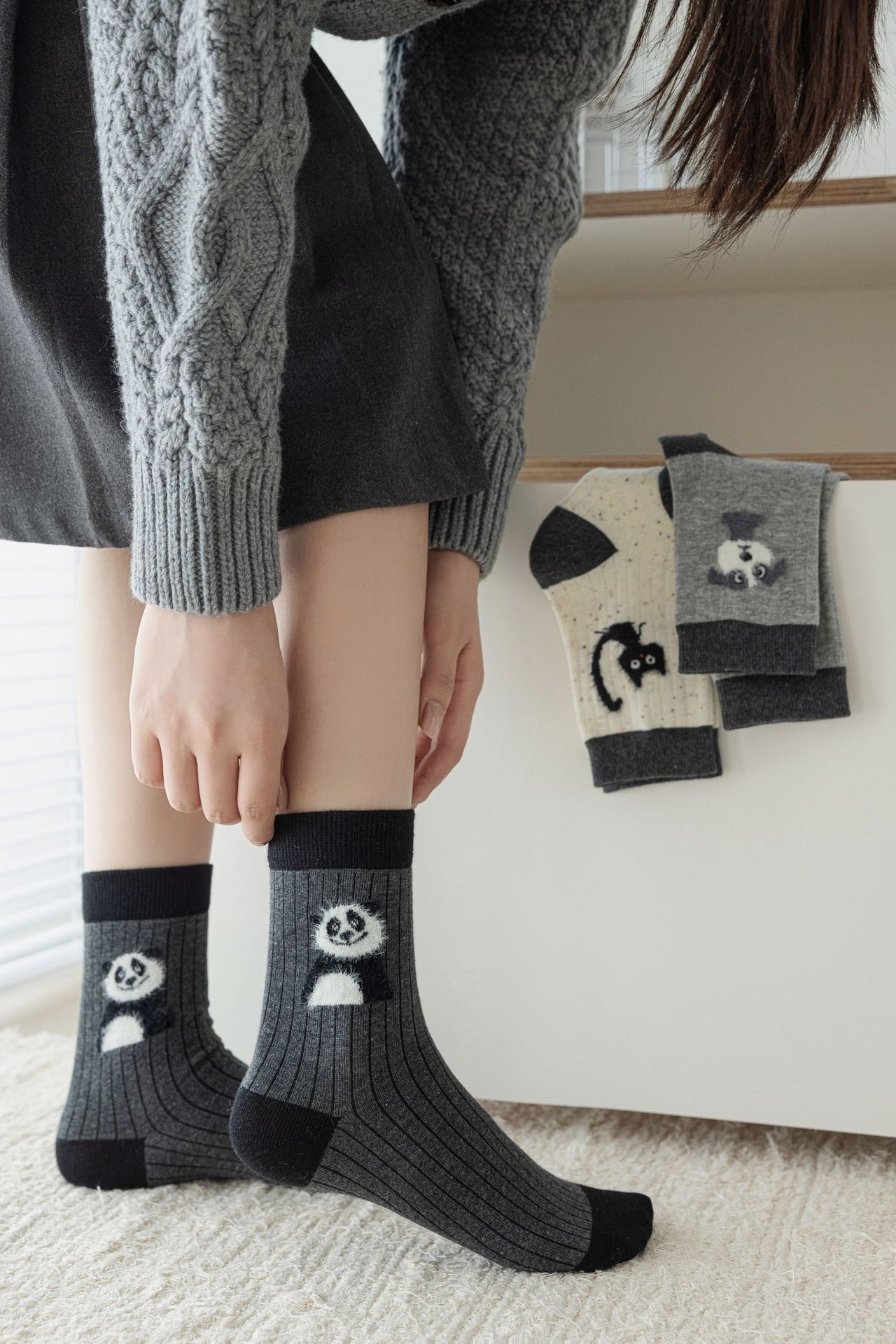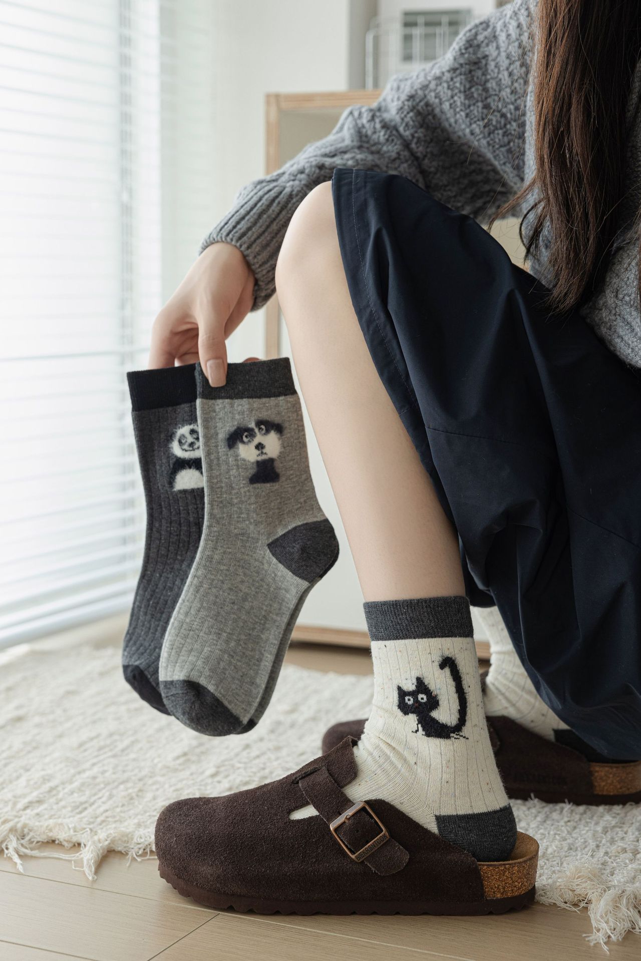 양말 여성의 가을과 겨울 회색 귀여운 동물 입체 느낌 작은 우유 개 양말을 쌓은면 양말스토어 가기