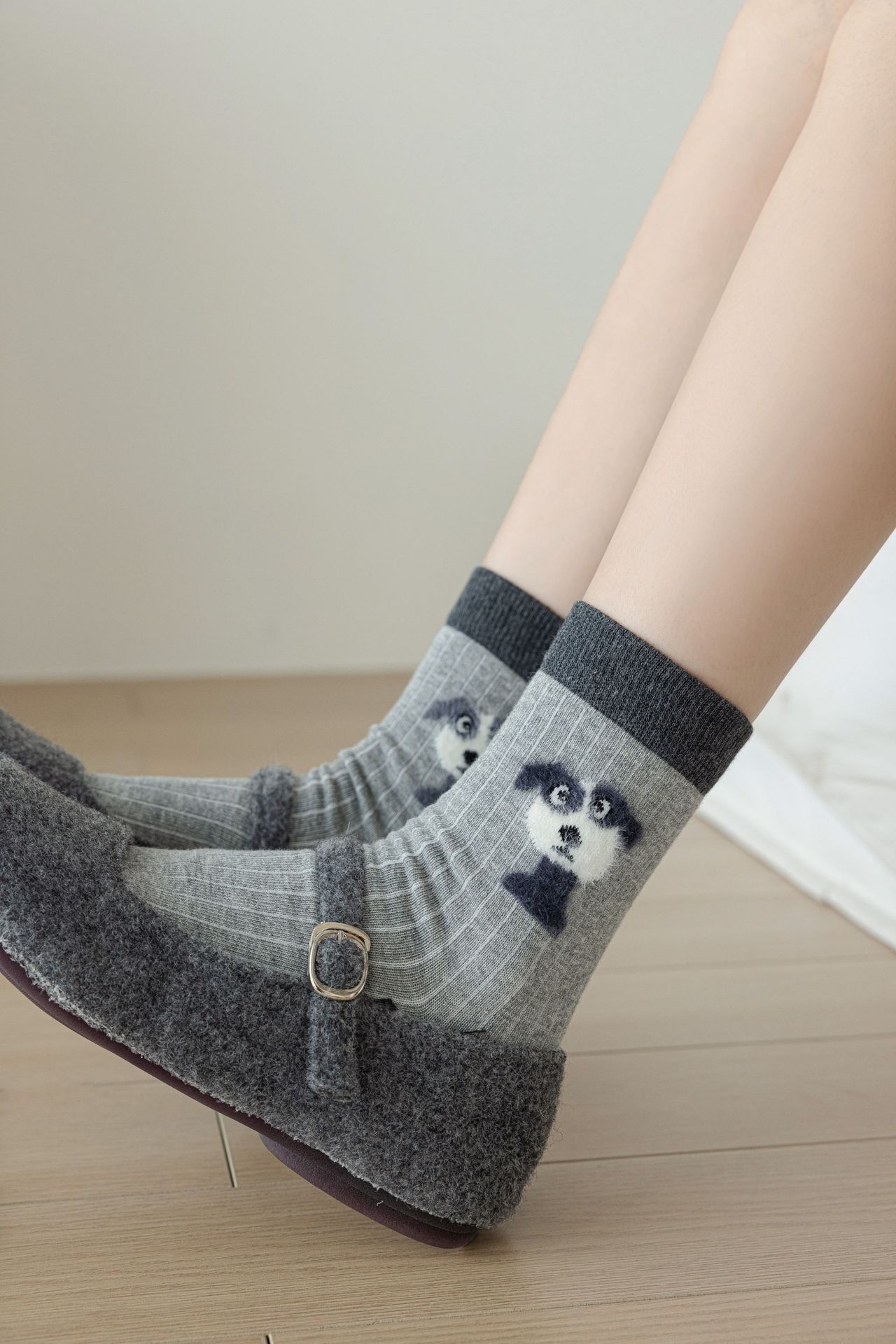 양말 여성의 가을과 겨울 회색 귀여운 동물 입체 느낌 작은 우유 개 양말을 쌓은면 양말