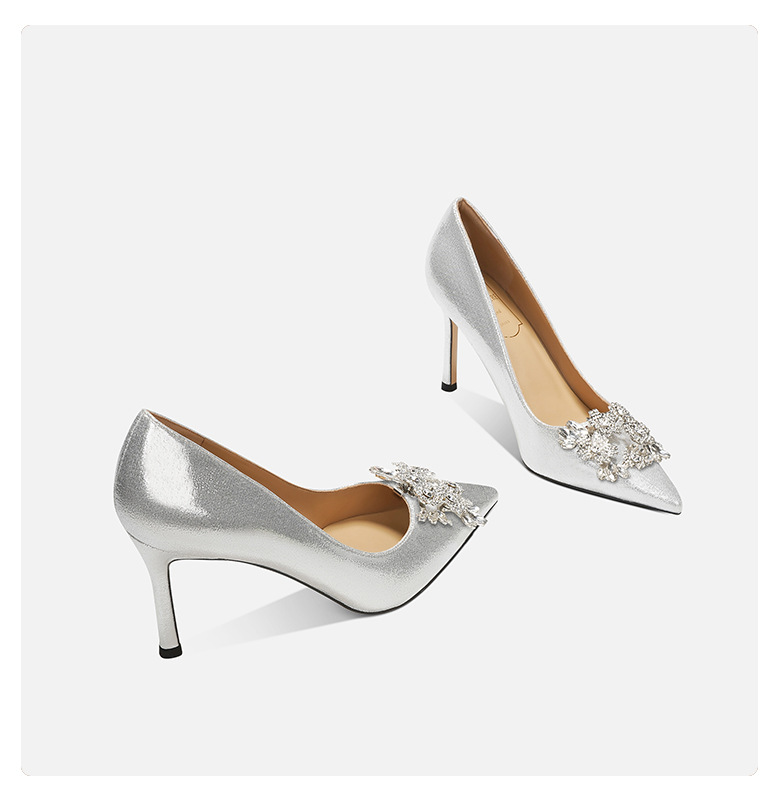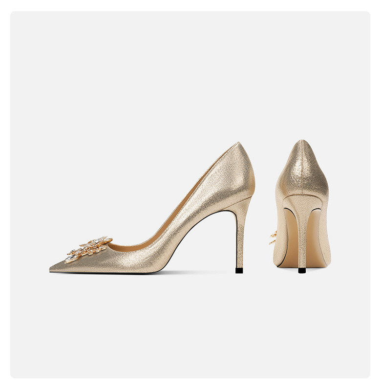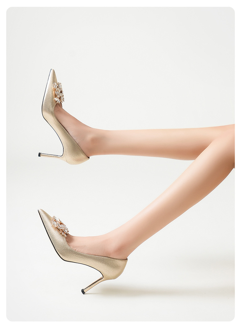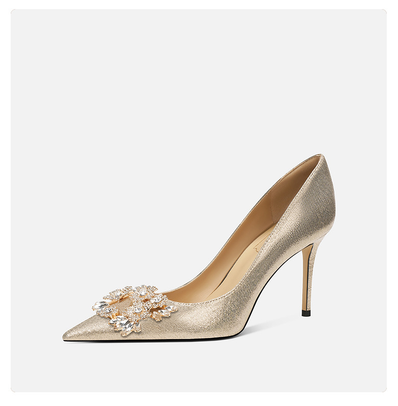 708-B73 프랑스 광장 버클 라인스톤 하이힐 여성 황금 우아한 청삼 스틸레토 힐 슈즈 들러리 웨딩 원피스 웨딩 슈즈