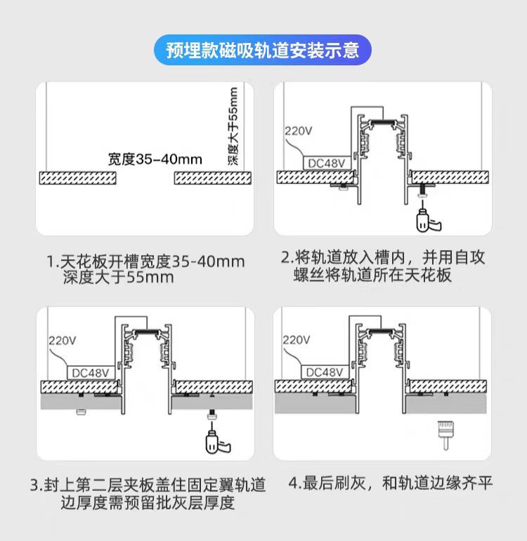 미 스마트 마그네틱 트랙 조명 무등실 거실 디자인 표면 장착 매립형 투광등 라인 조명 레일 조명 가정용스토어 가기