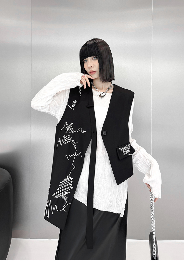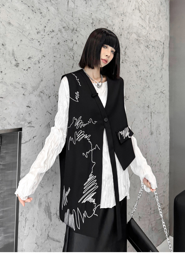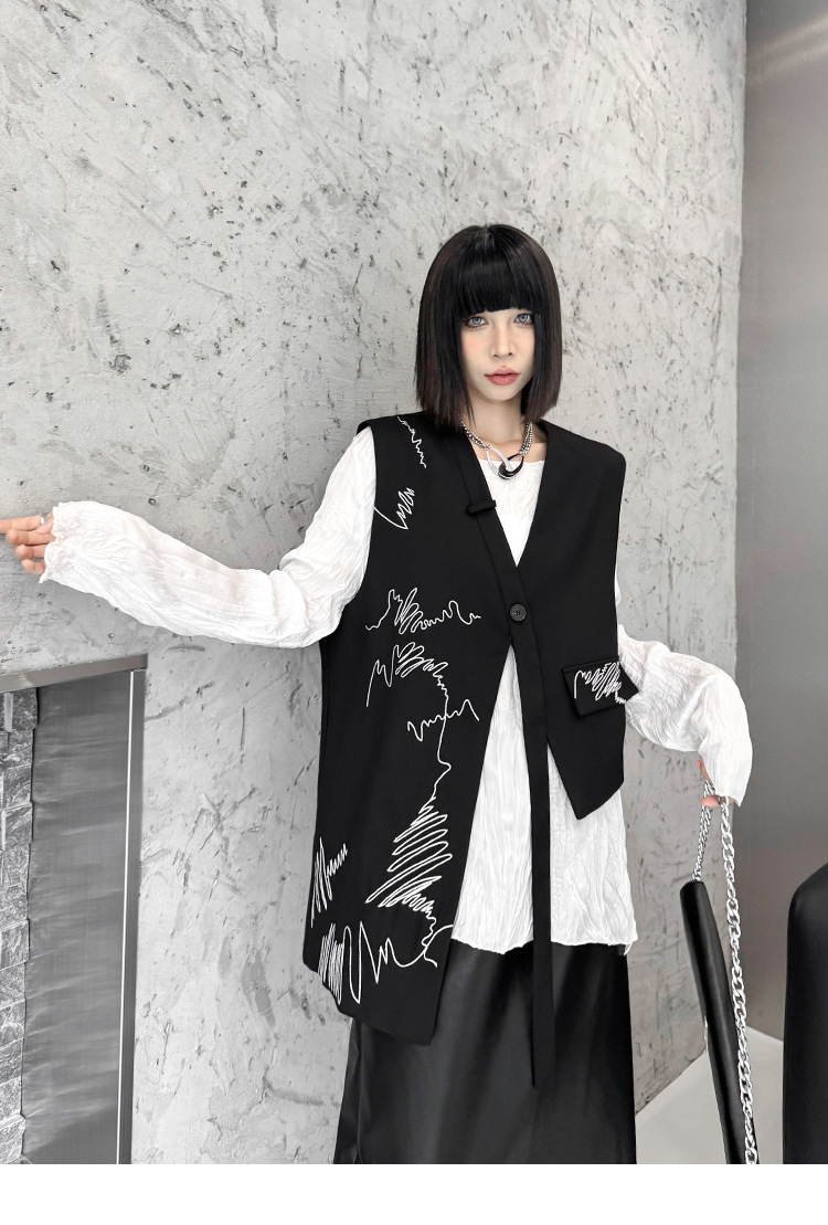 산모토 스타일 틈새 디자인 맞춤형 자수 조끼 여성 봄, 가을 새로운 패션 불규칙한 느슨한 다용도 조끼스토어 가기