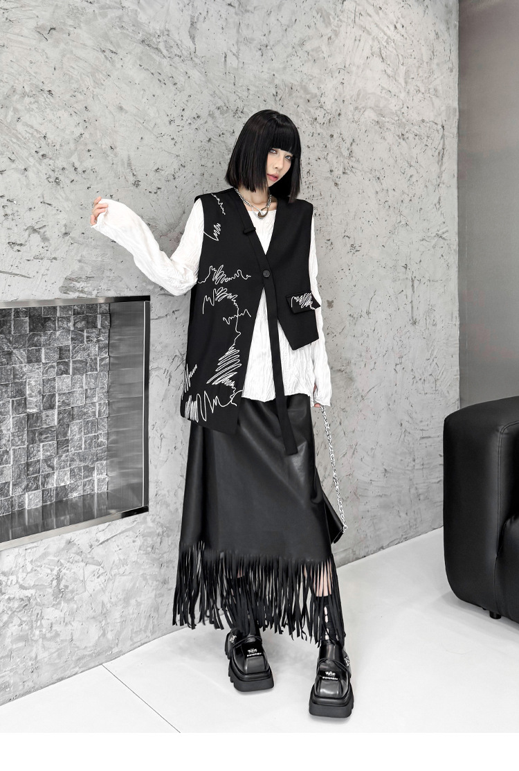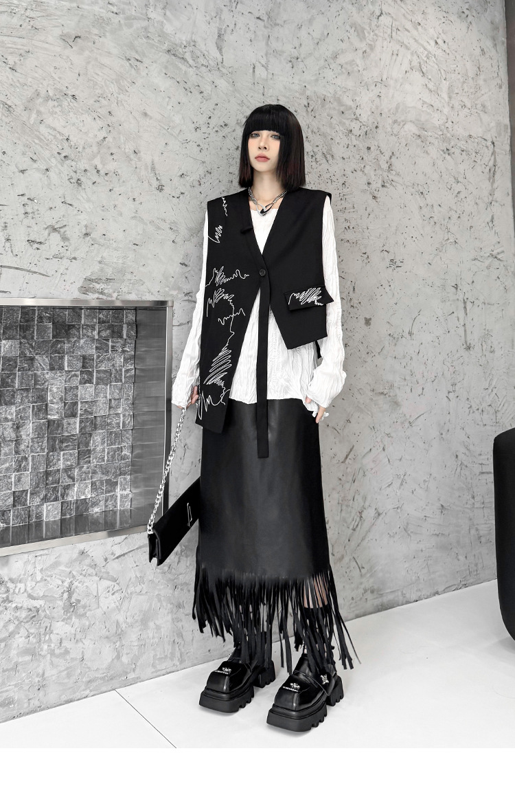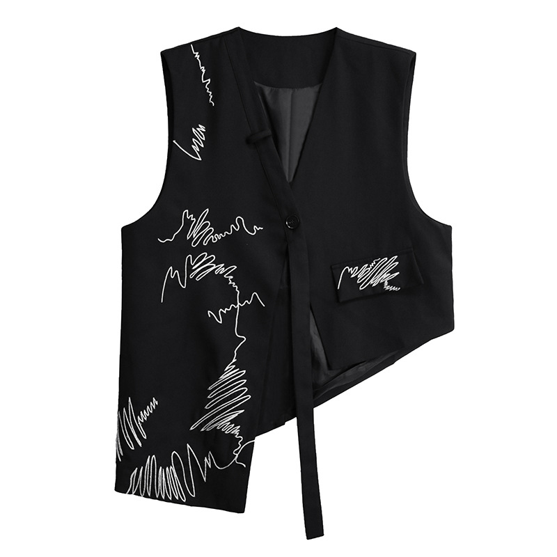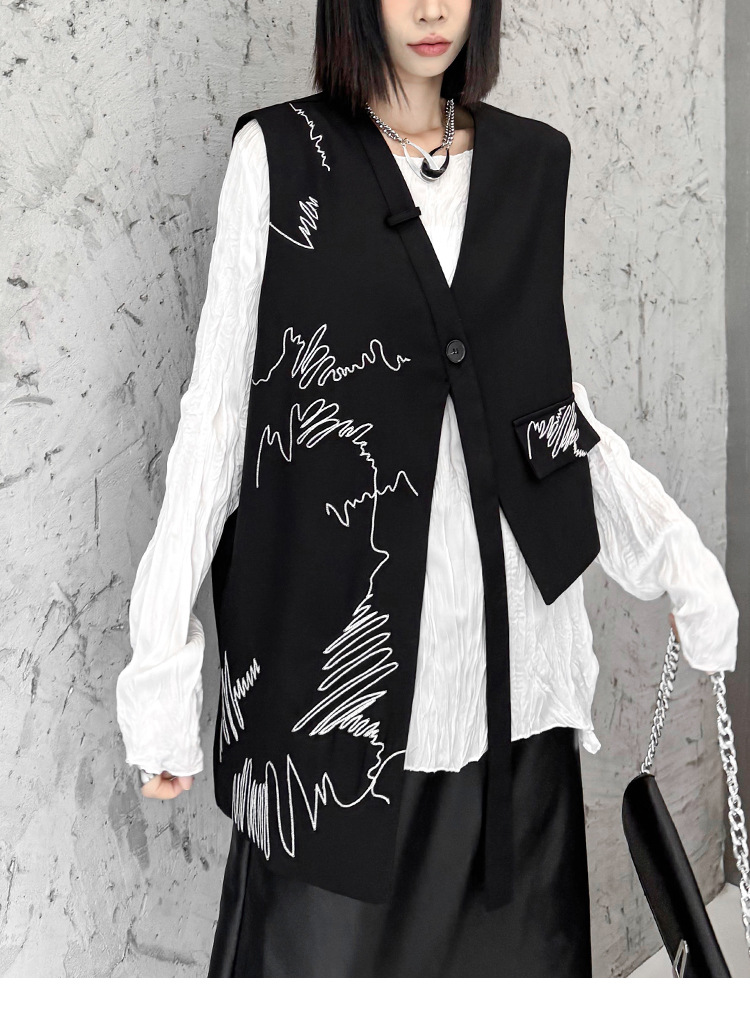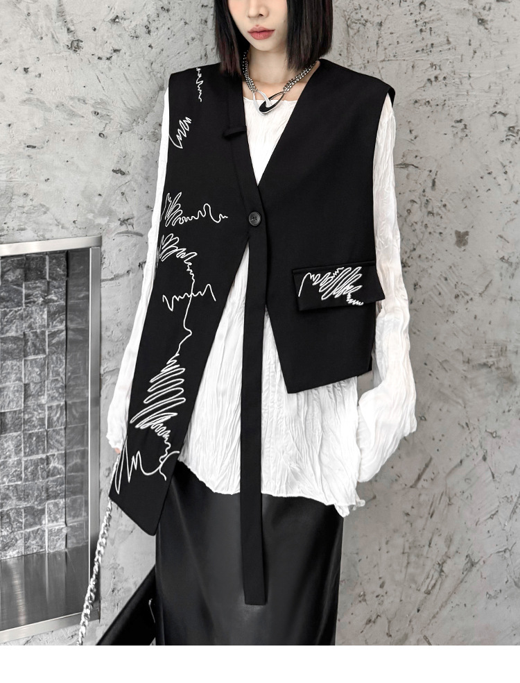 산모토 스타일 틈새 디자인 맞춤형 자수 조끼 여성 봄, 가을 새로운 패션 불규칙한 느슨한 다용도 조끼