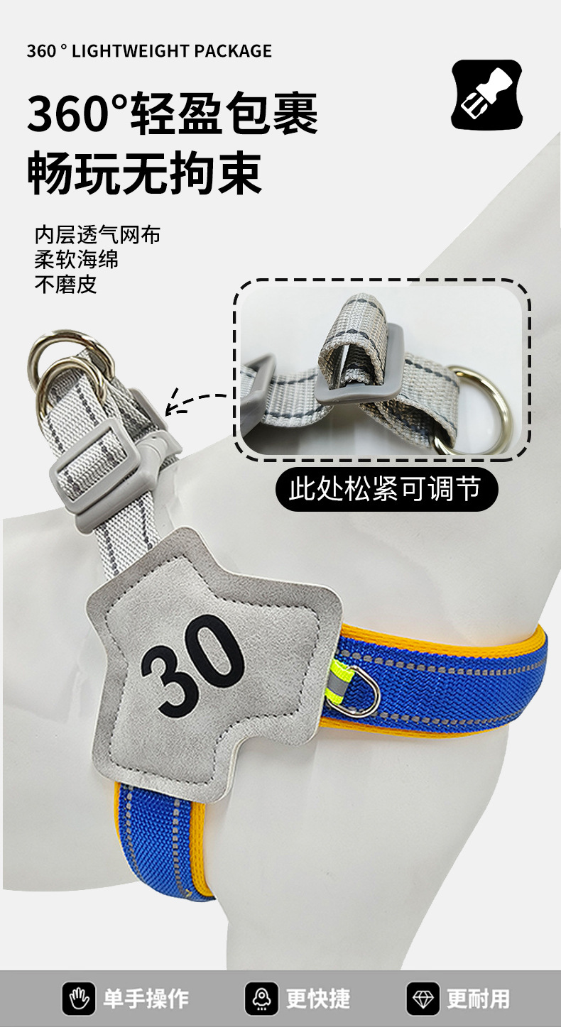 • 파란색 가슴 하네스 + 1.5m 원형 리드줄