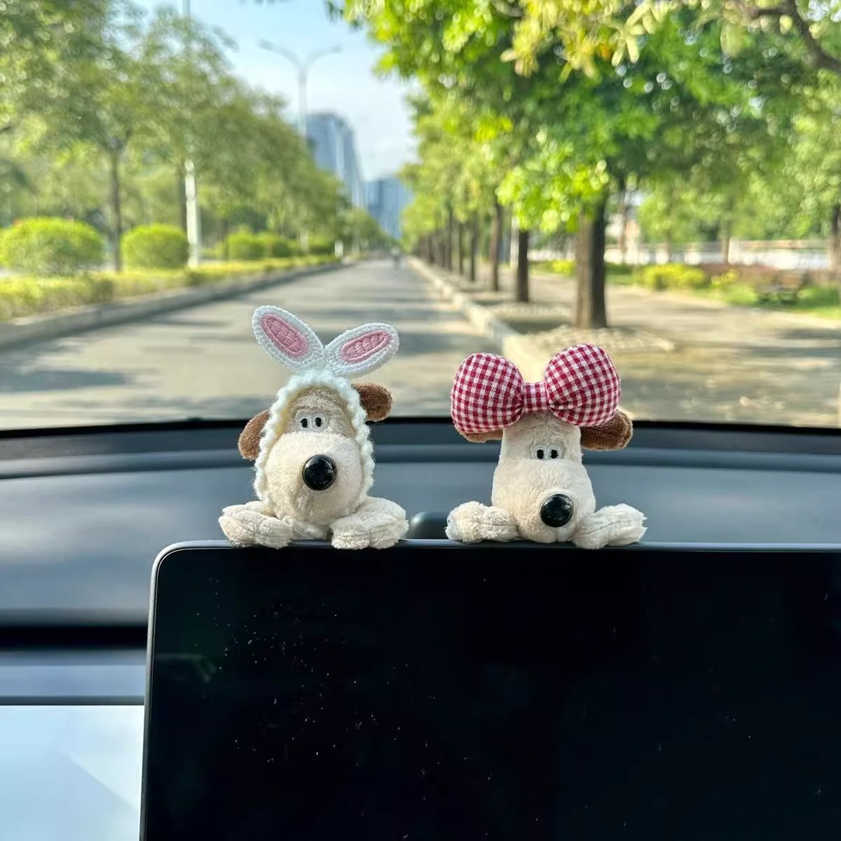 귀여운 개 자동차 디스플레이 봉제 인형 장식 홈 오피스 컴퓨터 화면 장식 창조적 인 생일 선물