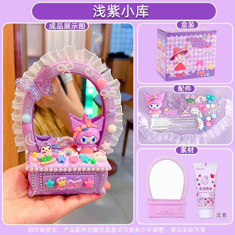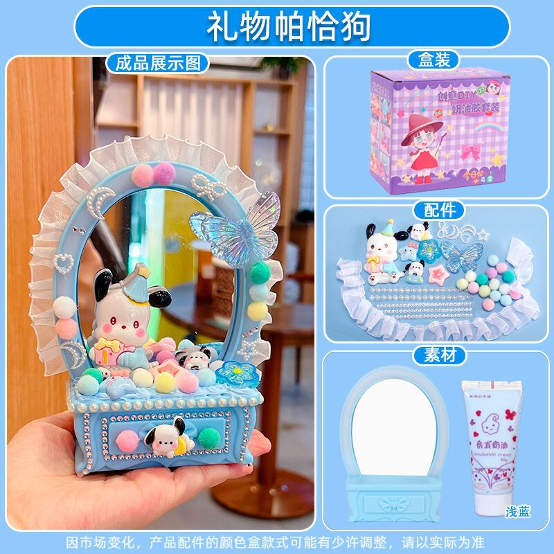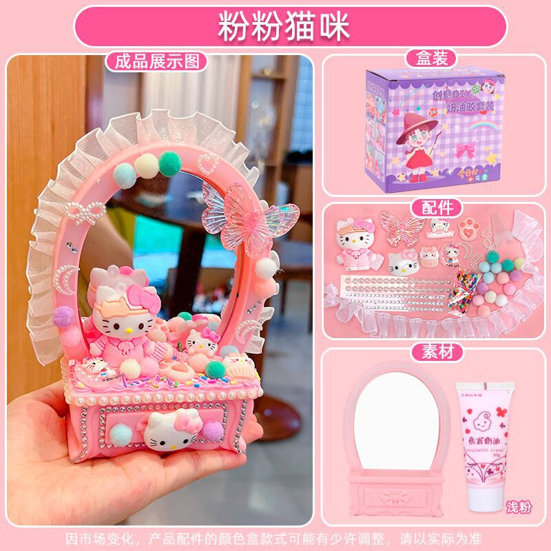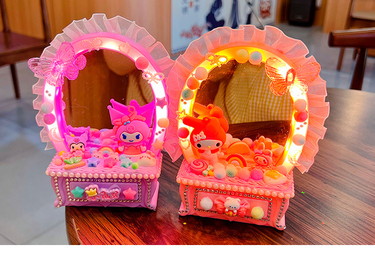 2024 새로운 소녀 크림 젤 드레싱 테이블 램프 저장 상자 어린이 DIY 수제 메이크업 거울 교육 장난감스토어 가기