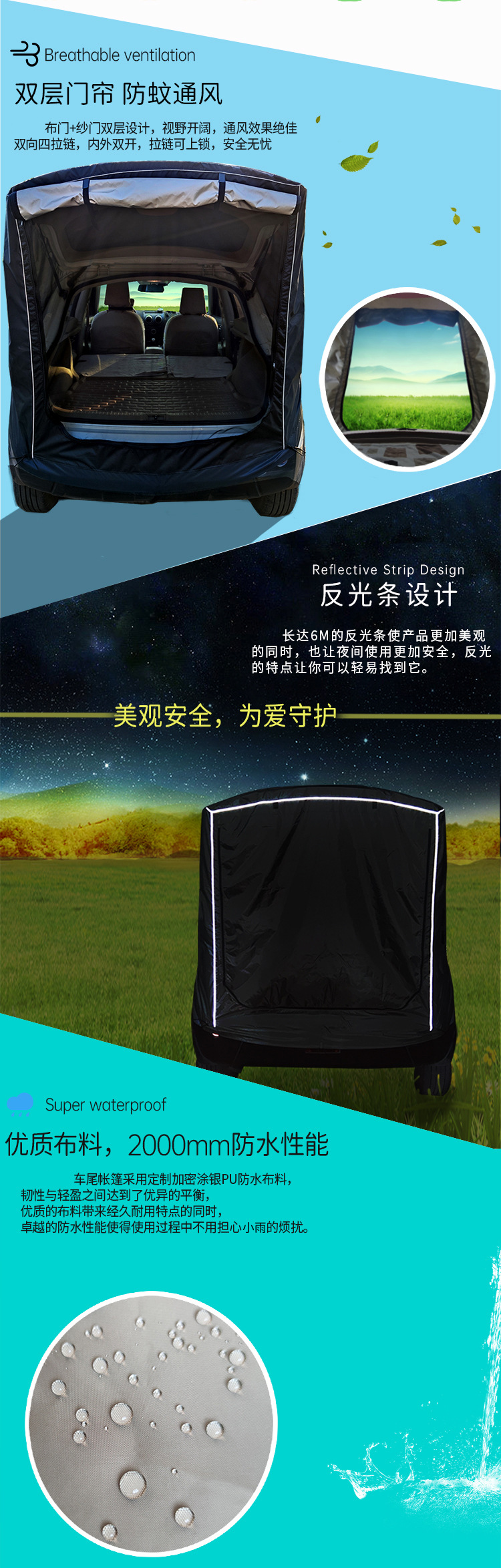 국경 간 핫 세일 SUV 야외 자율 주행 투어 카 후방 자동차 지붕 트렁크 확장 텐트 야외 캠핑 캐노피