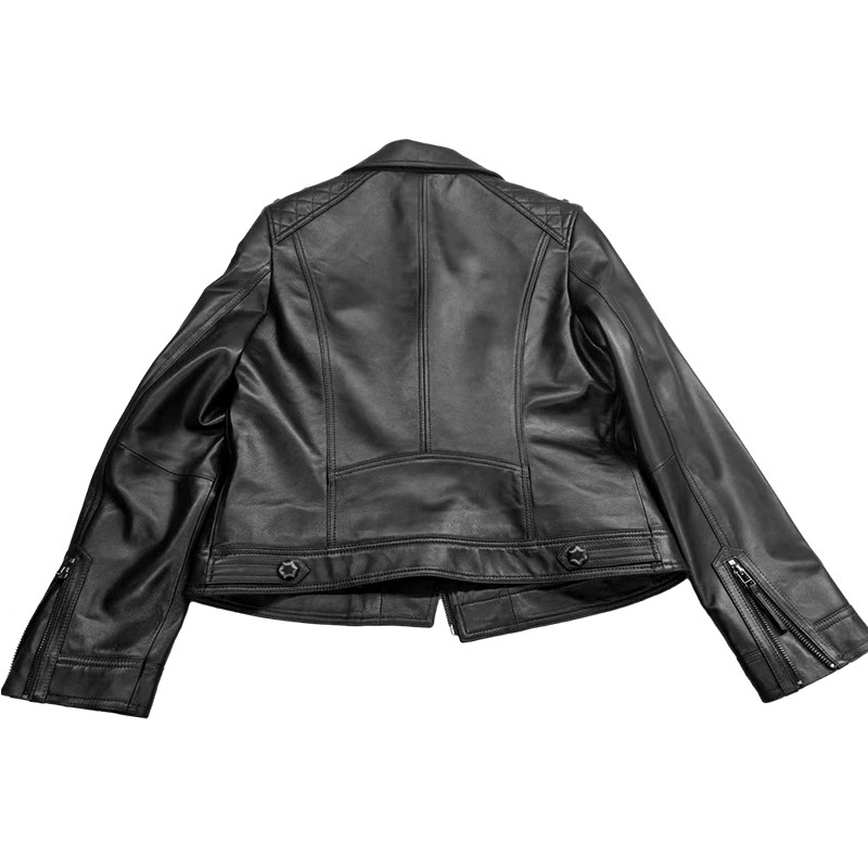 블랙 라펠 정품 가죽 코트 하이 엔드 우아한 오토바이 재킷 탑 슬림 핏 슬림 핏