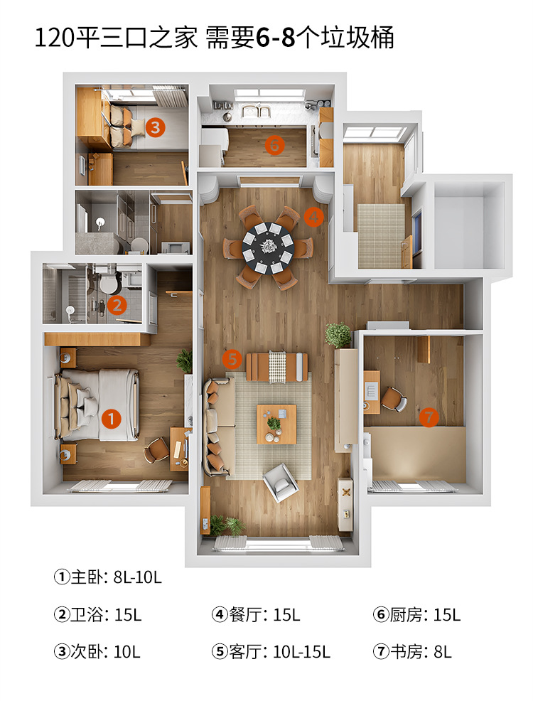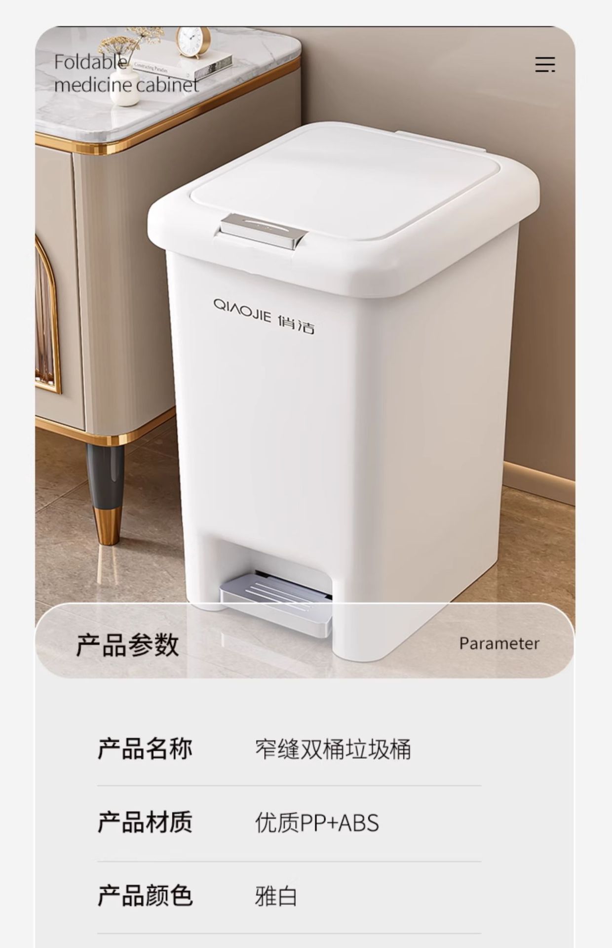 • 6.5L 쓰레기통❤발 + 손 누르기 [침실]