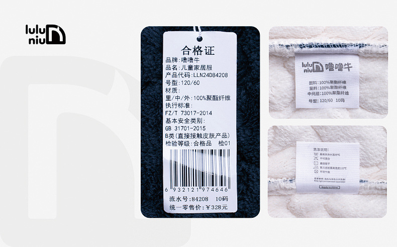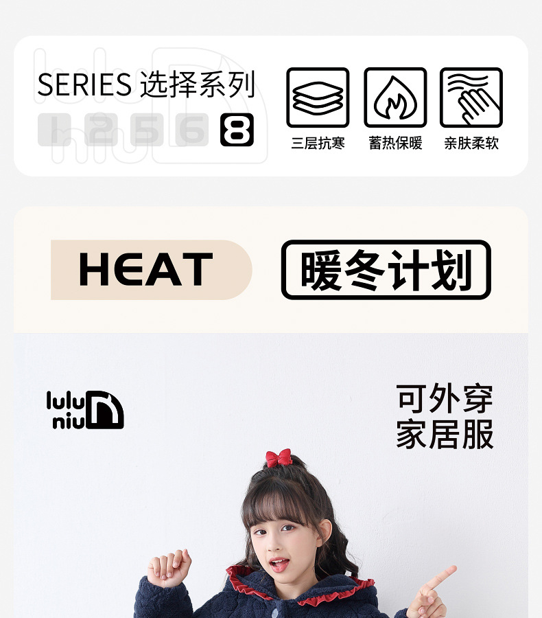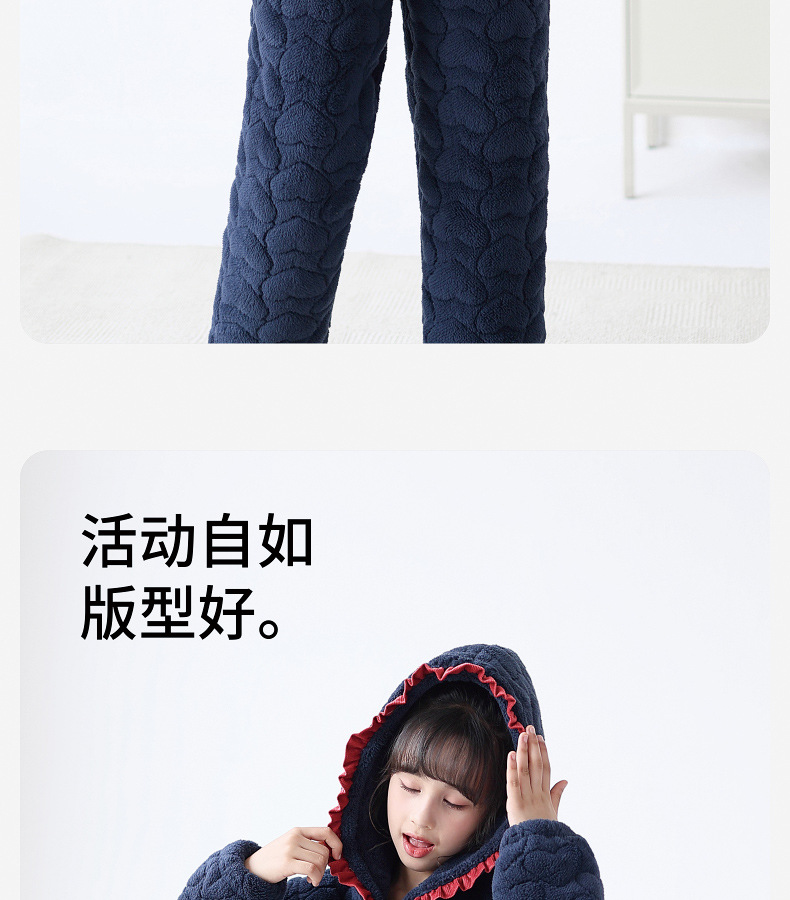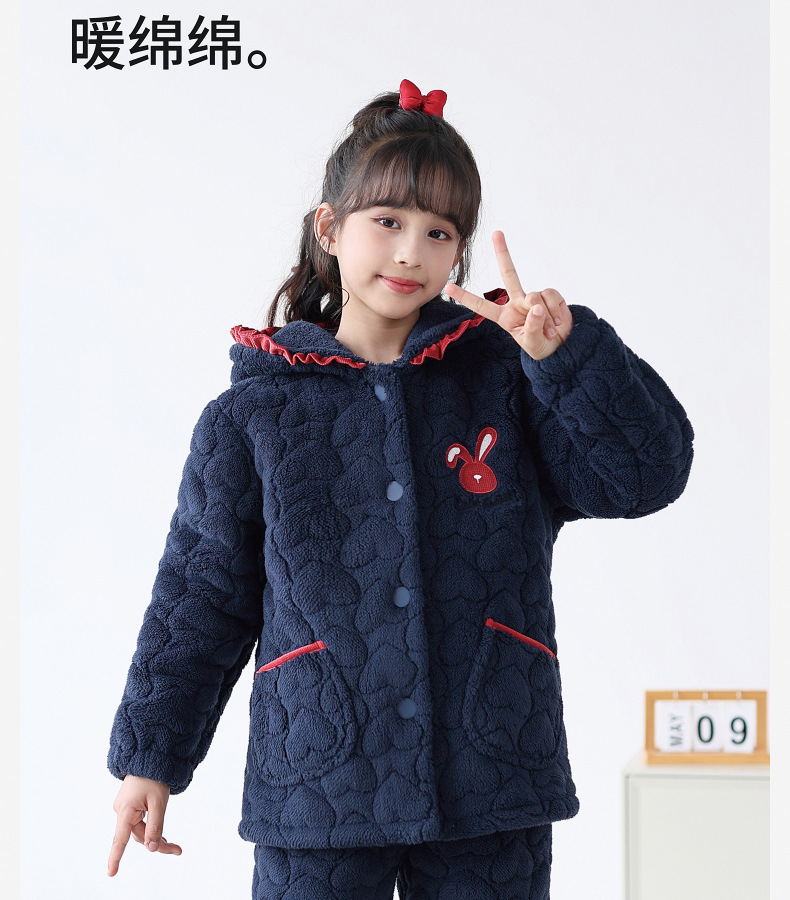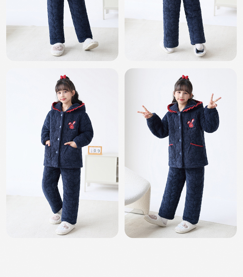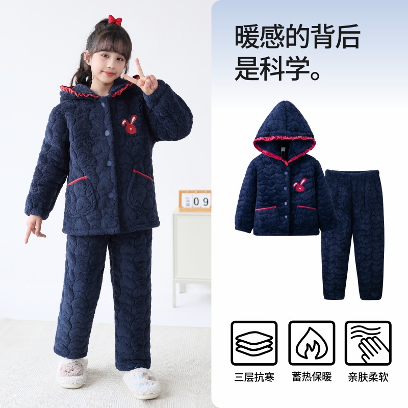 Lulu Niu 어린이 잠옷 소녀 2024 겨울 산호 양털 3 층 면화 두꺼운 소녀 중 큰 어린이 집 옷스토어 가기