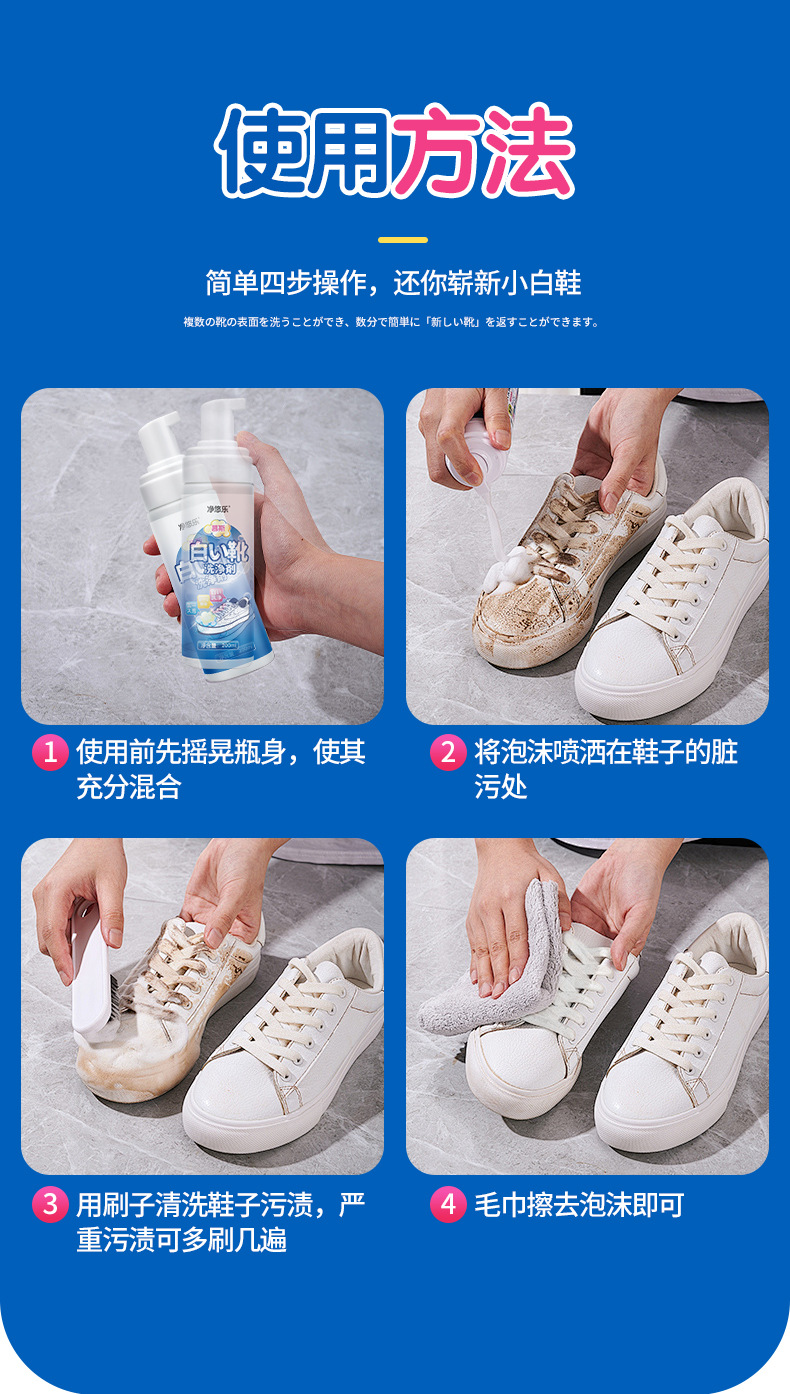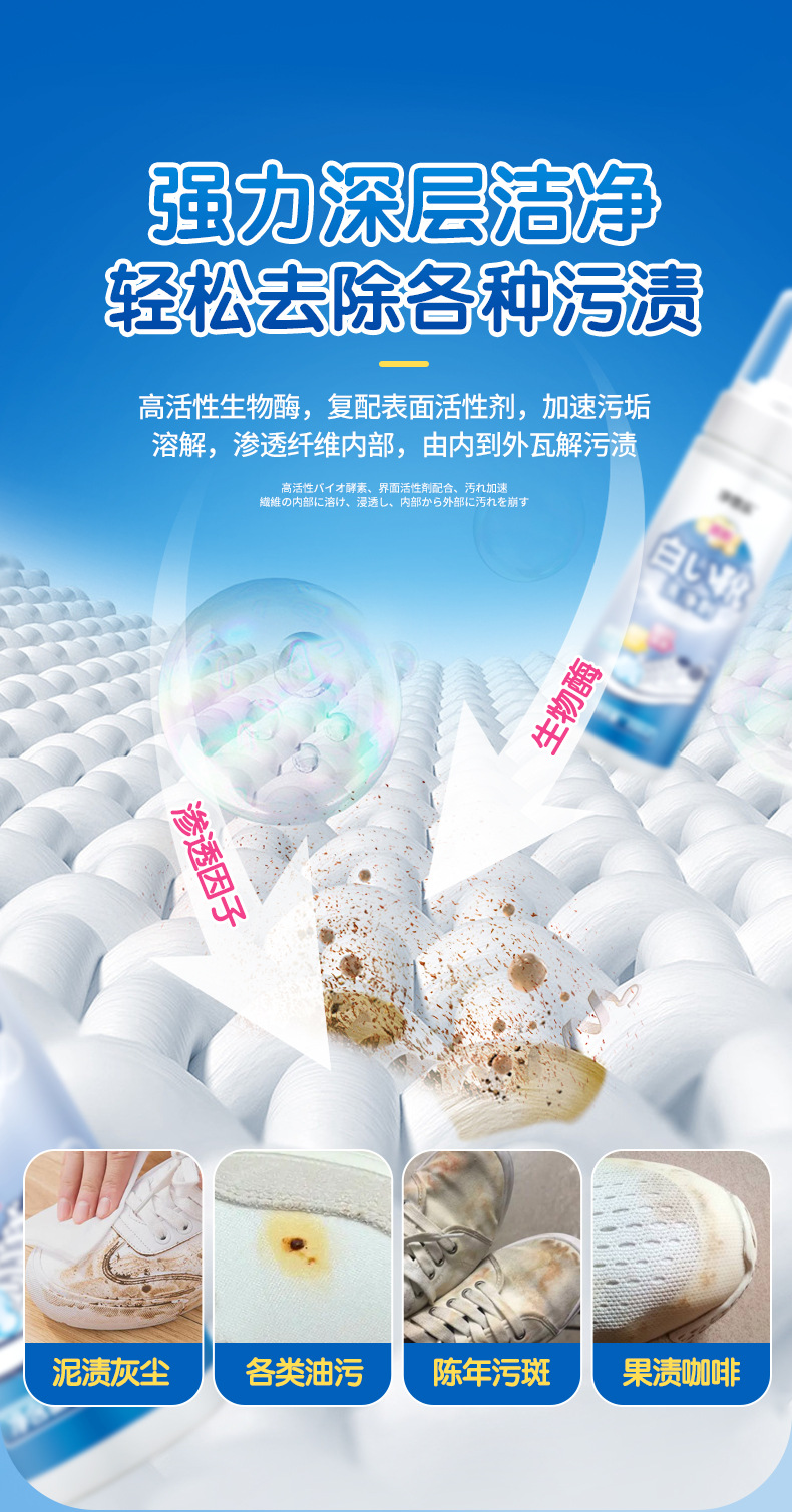 흰색 신발 청소 에이전트 무스 미백 세제 오염 제거 노란색 그물 신발 드라이 클리닝 에이전트 세척 무료 유물 재고 도매스토어 가기
