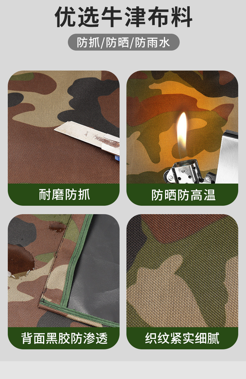 升级1:5MM加厚PP材质对比市面上的牛津布,我们的防水PP材质具有真正的防水,有效防潮,结实牢固的作用。