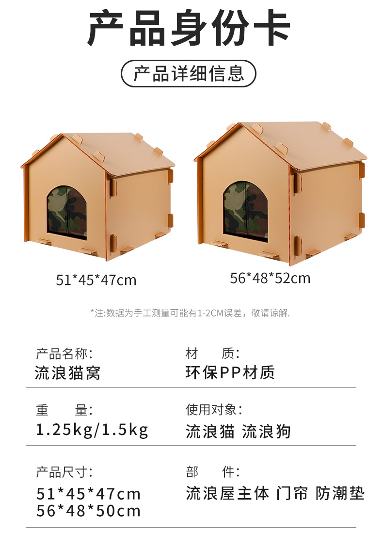 升级7:尺寸升级,我们的中号尺寸设计直接对标了同行的大号,大号更是做了一个加大设计,更能方便流浪猫一家居住。