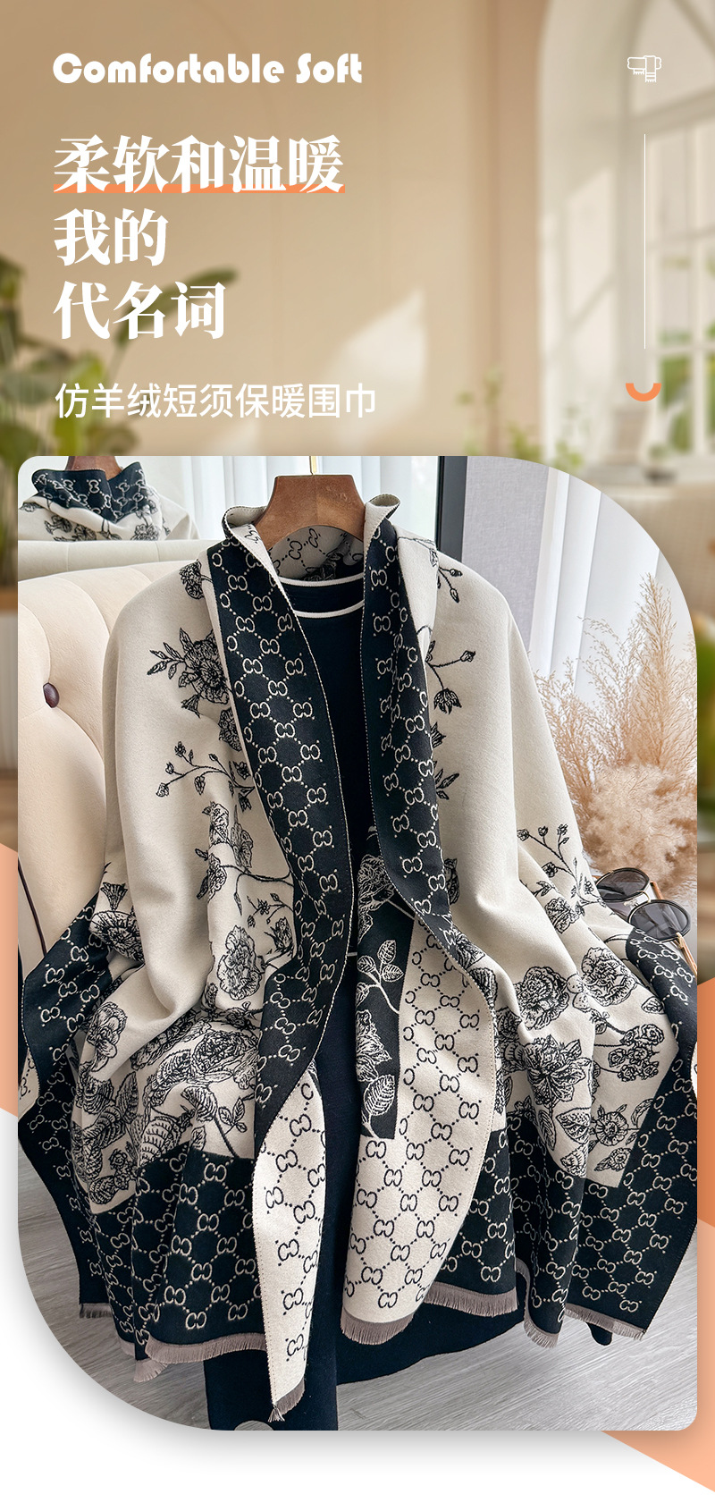 2024 가을과 겨울 새로운 캐시미어 꽃 빈티지 간단한 질감 인쇄 양면 따뜻한 스카프 목도리 여성