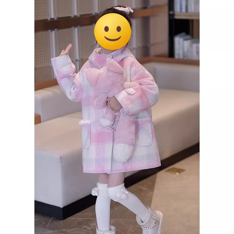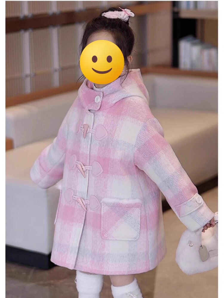 소녀 두꺼운 격자 무늬 코트 2024 새로운 세련된 어린이 가을과 겨울 옷 유행 트렌치 코트 큰 어린이 감기 방지 옷스토어 가기