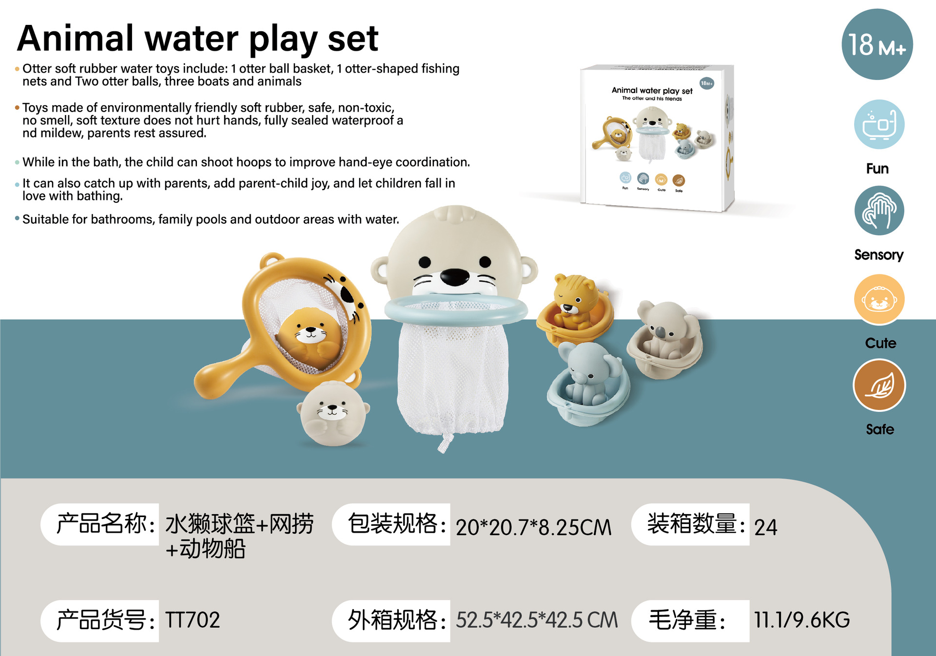 • TT702 수달 사격 + 그물 낚시 + 보트 3개 + 손 인형 3개 + 부드러운 고무 공 2개