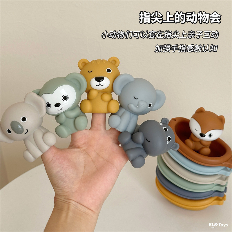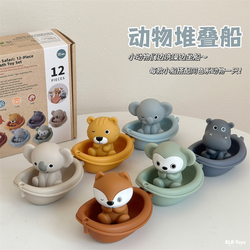 어린이 욕실 장난감 쌓을 수있는 떠 다니는 보트 보트 아기 목욕 물 쌓기 보트 동물 손가락 세트 장난감스토어 가기