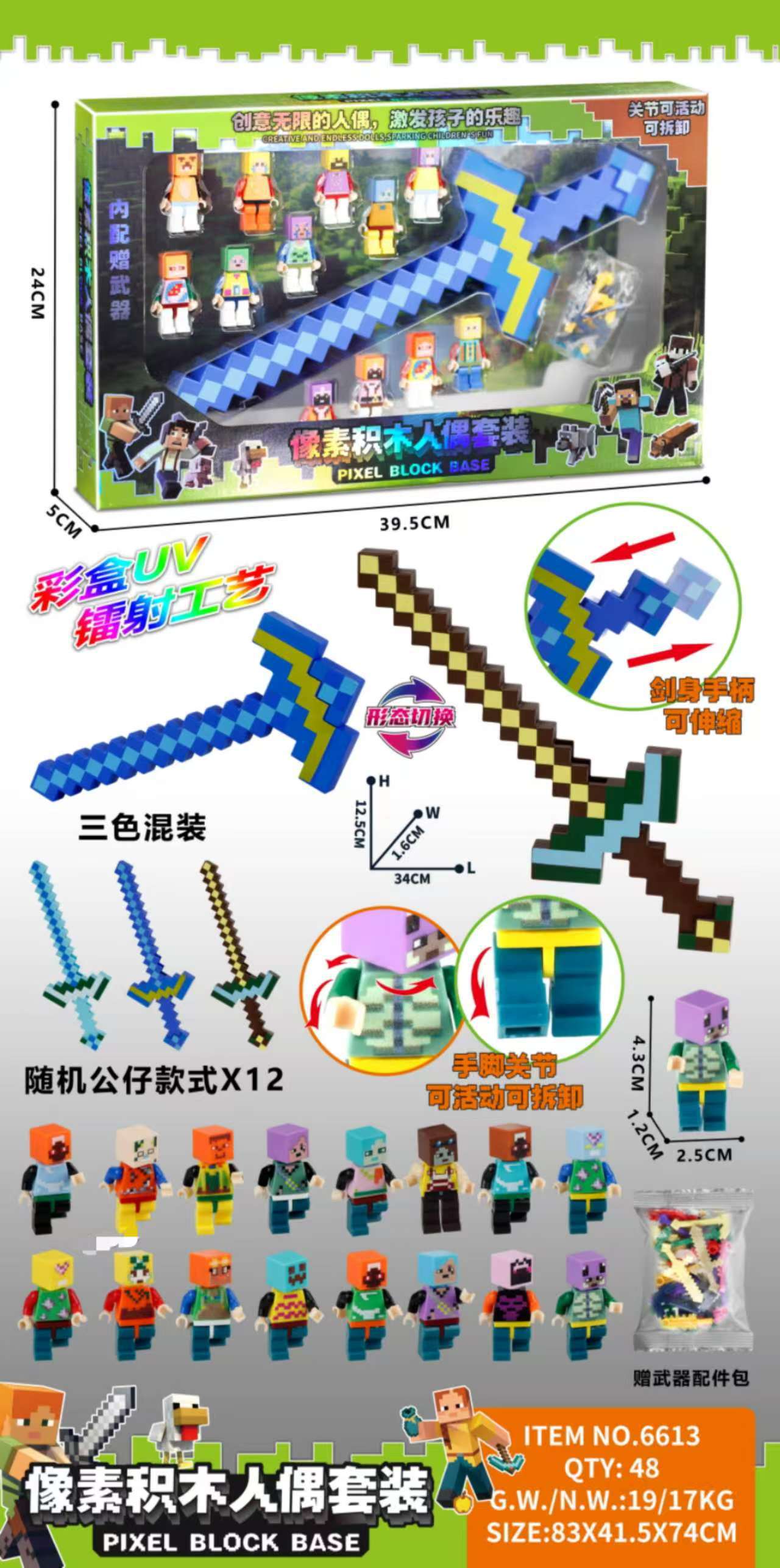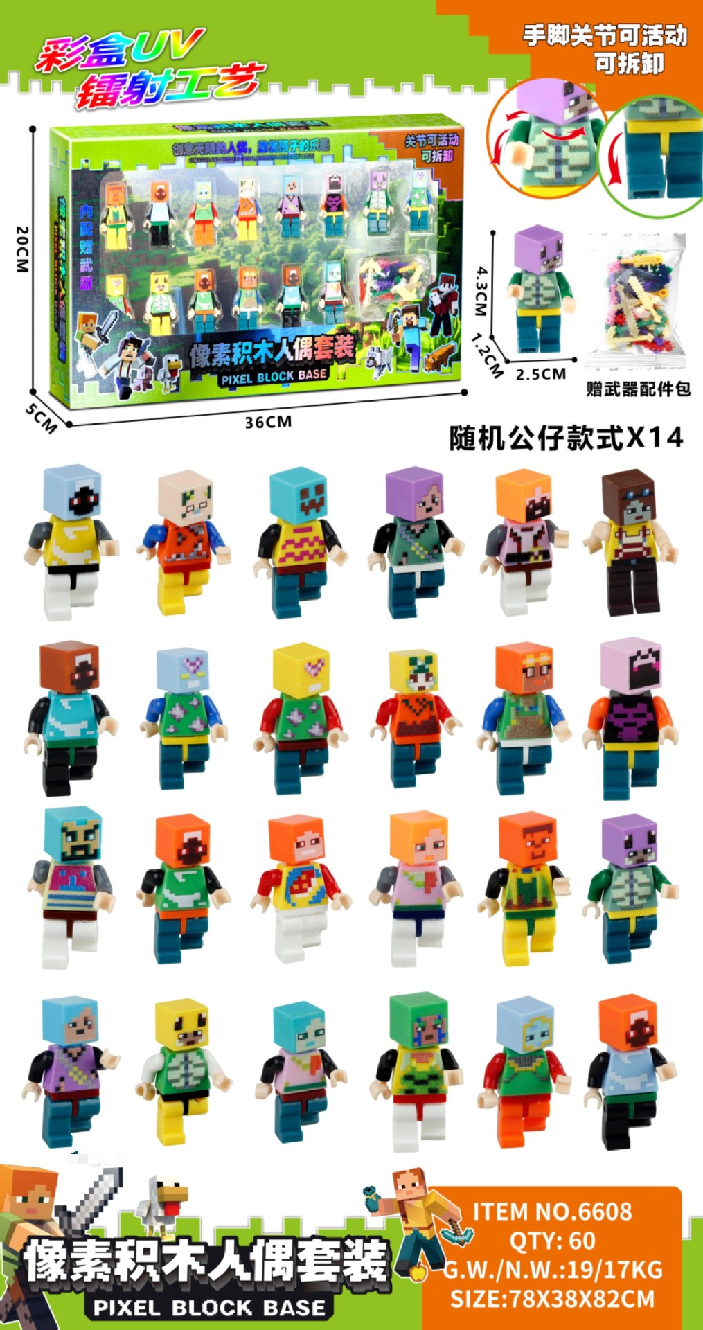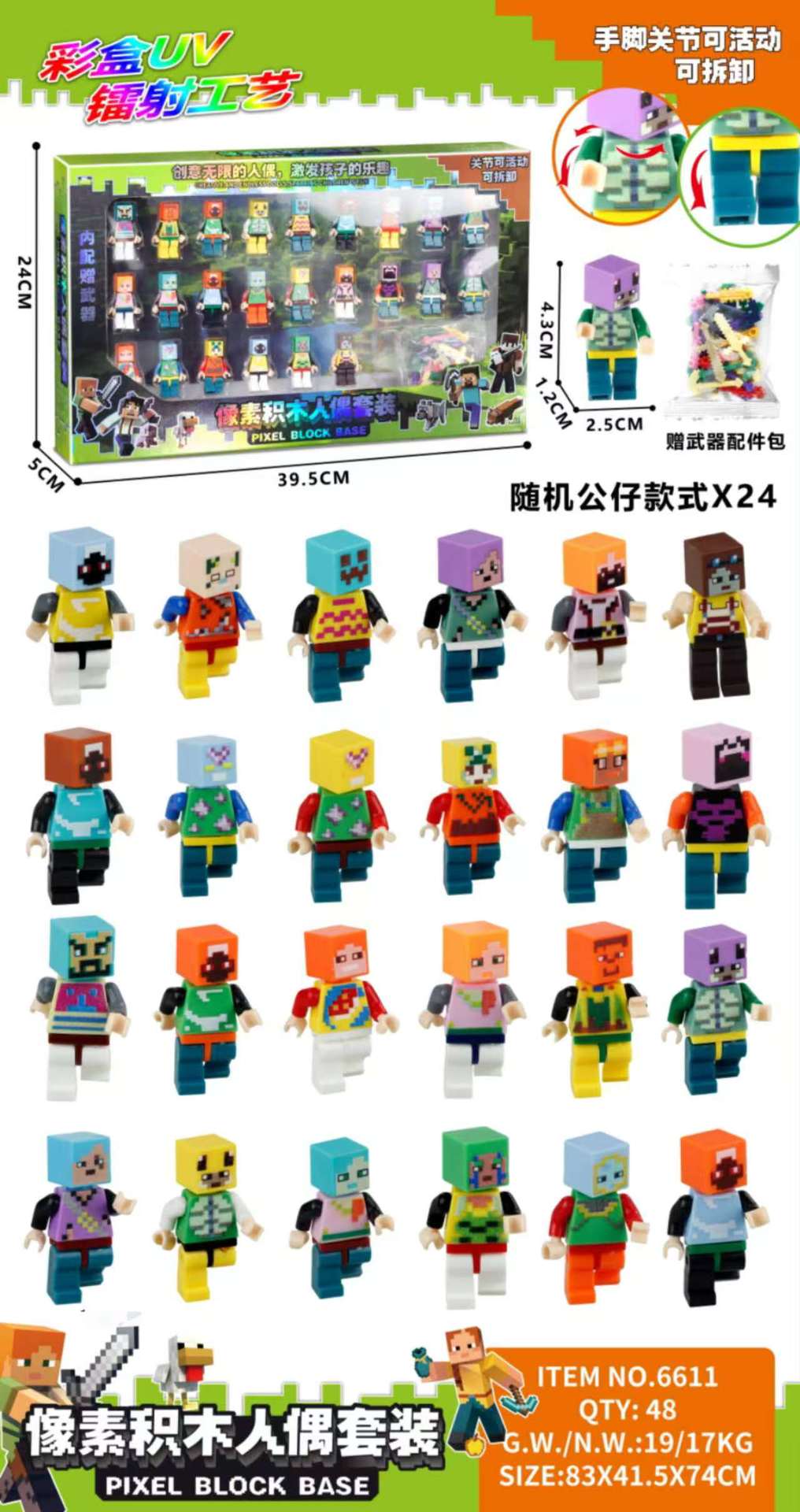 • 6611 픽셀 블록 피규어 - 24개 피규어 + 무기