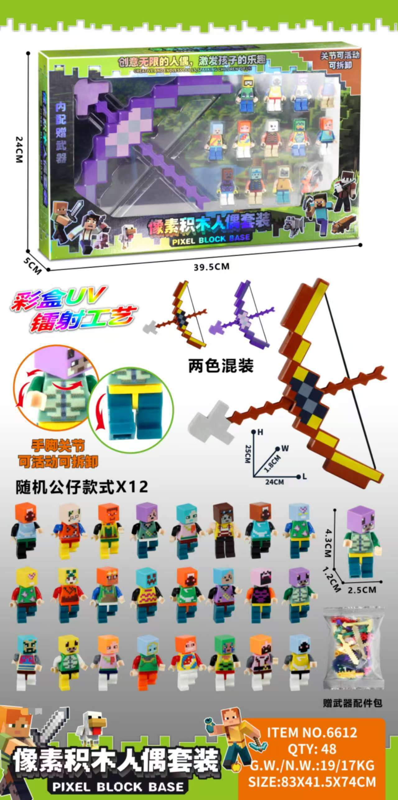 • 6612 픽셀 블록 피규어 - 미니 피규어 12개 + 대형 활과 화살