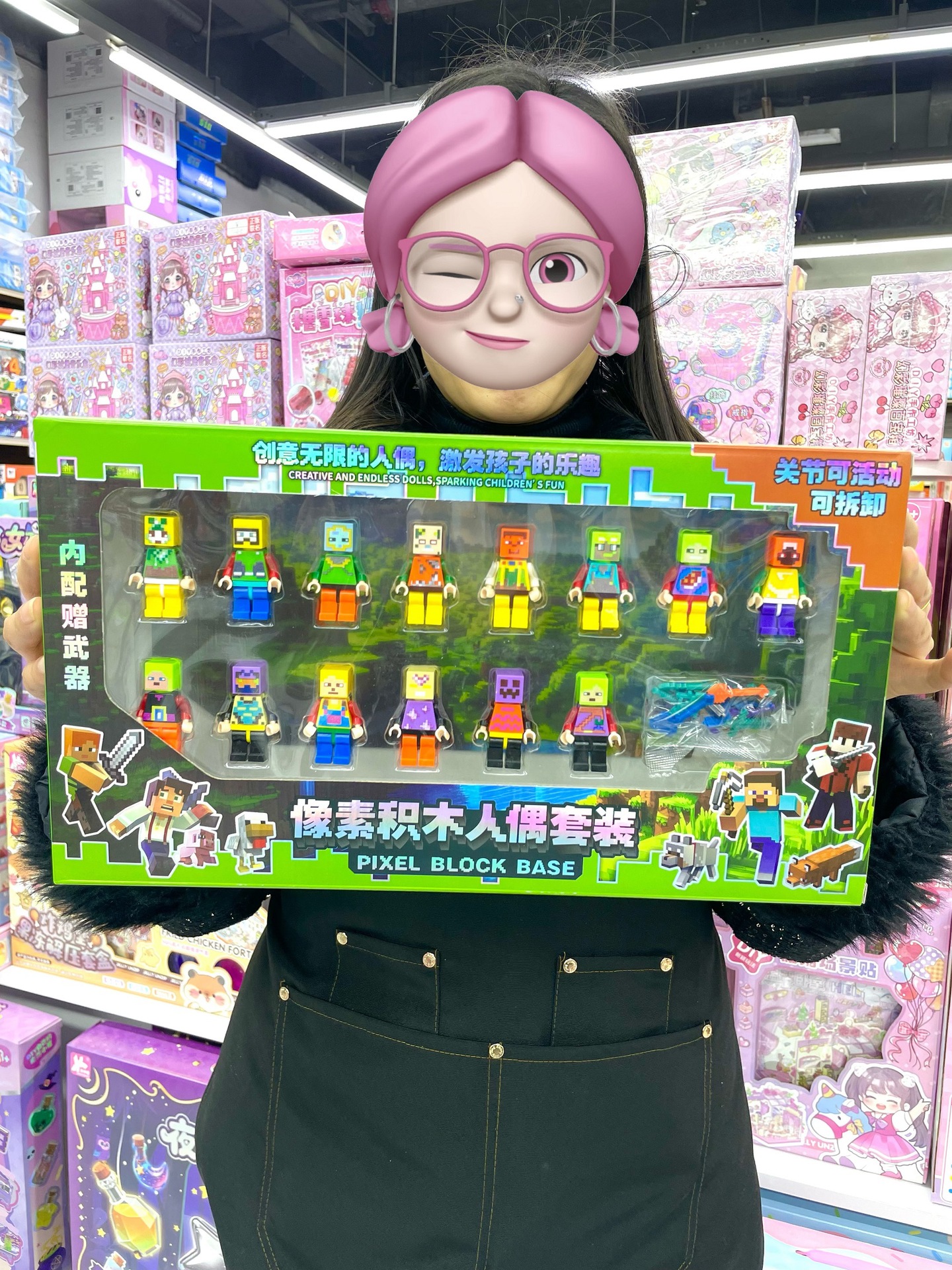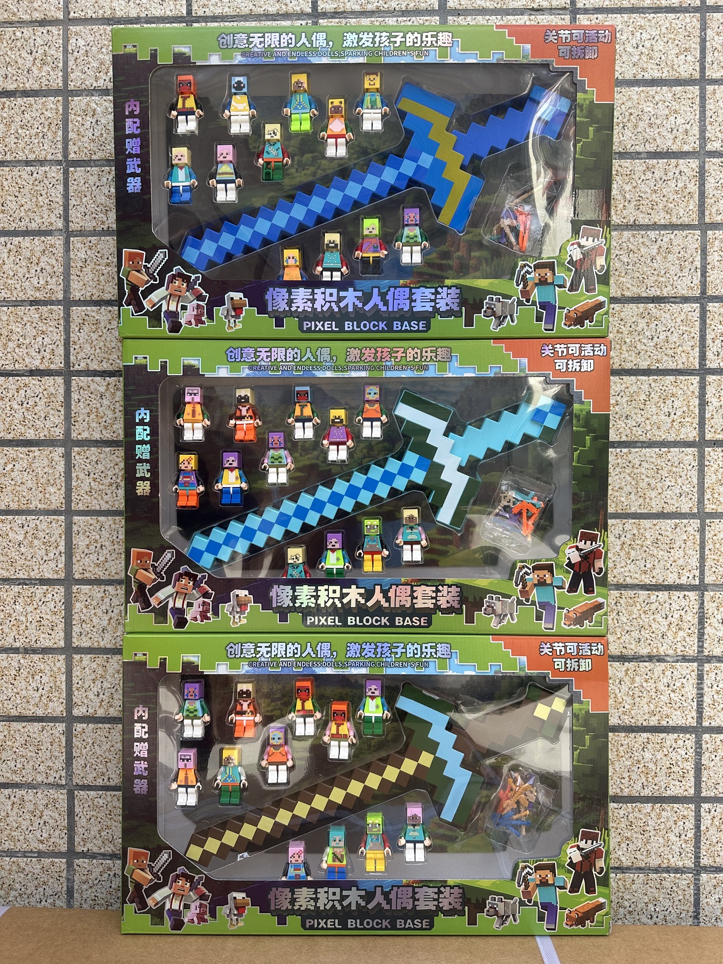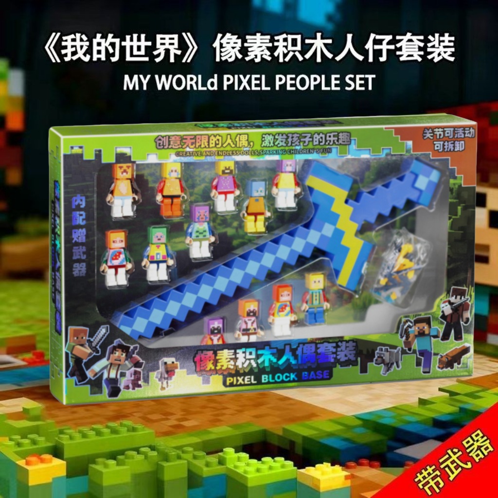 내 블록 월드 피규어 장식 모델 조립 세트 인형 무기 어린이 교육용 장난감 선물 상자스토어 가기