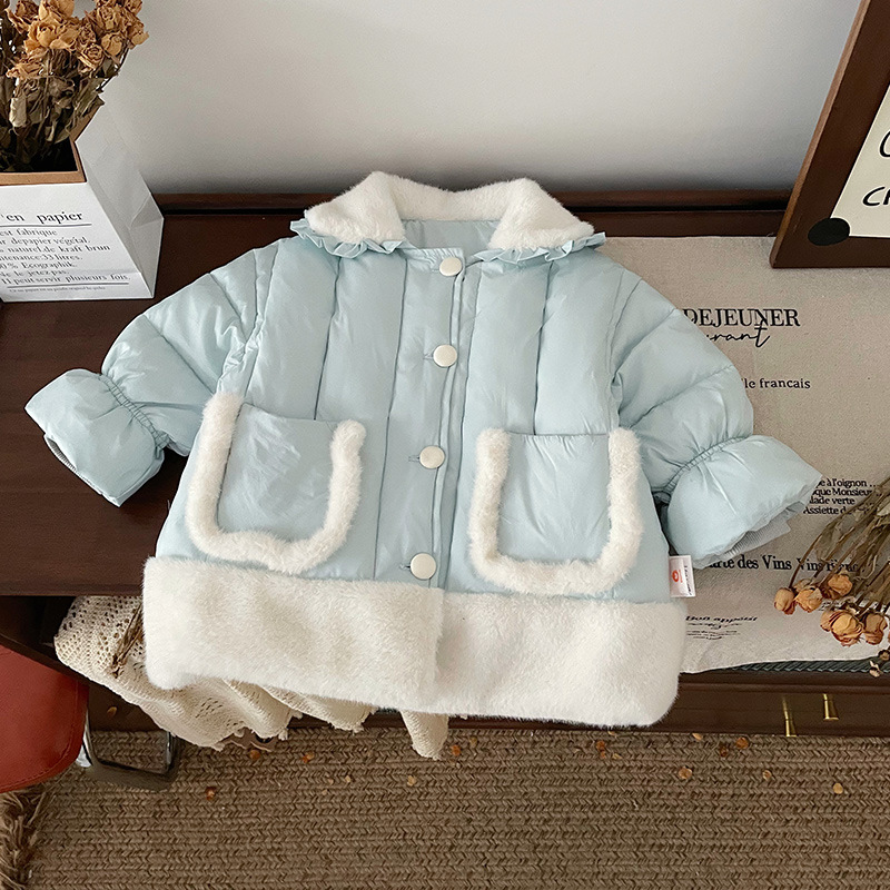 여아용 누빔 재킷 2025 가을 겨울 신상 여아 아동복 한국 스타일 두꺼운 털 스티치 누빔 코트 여아용스토어 가기