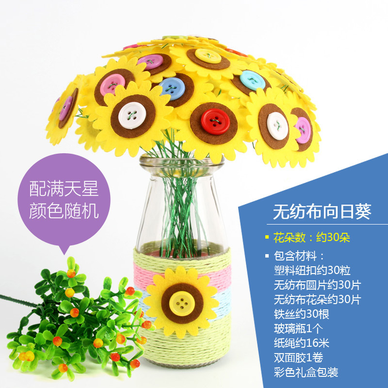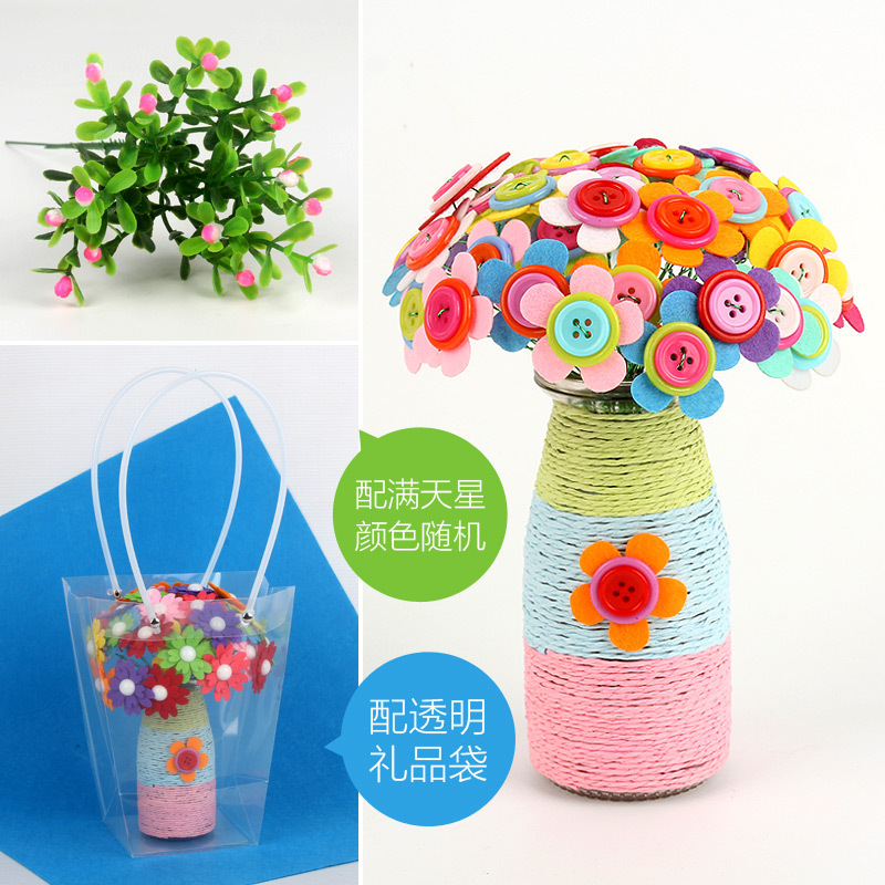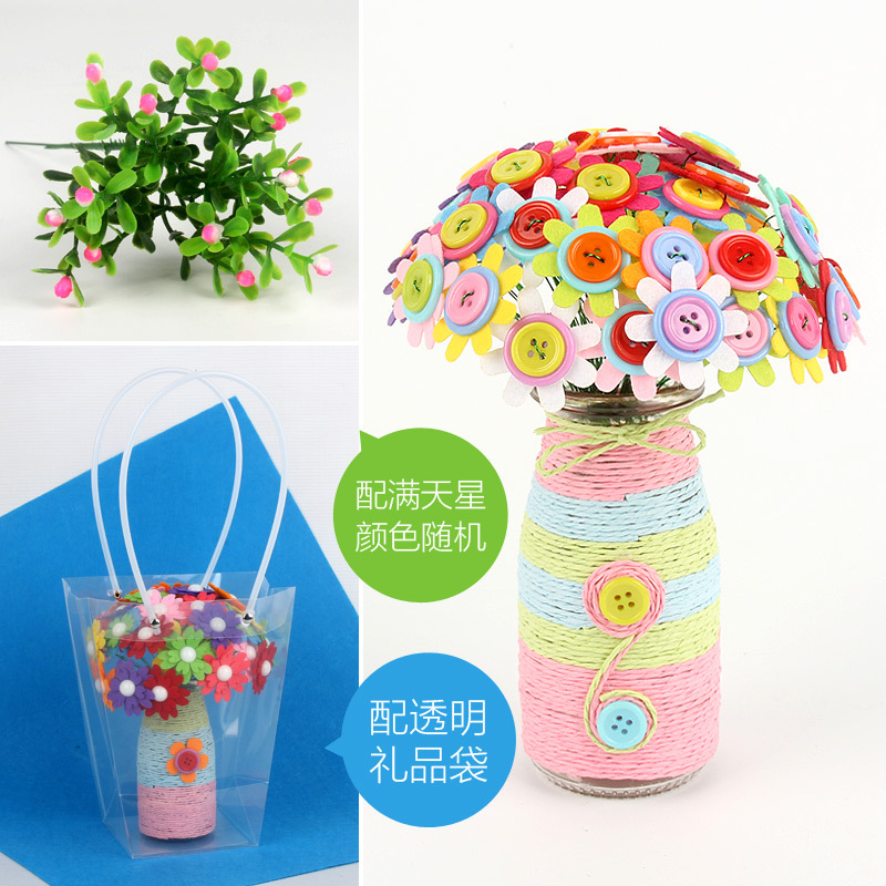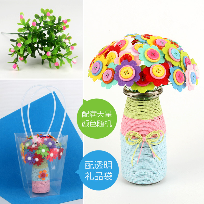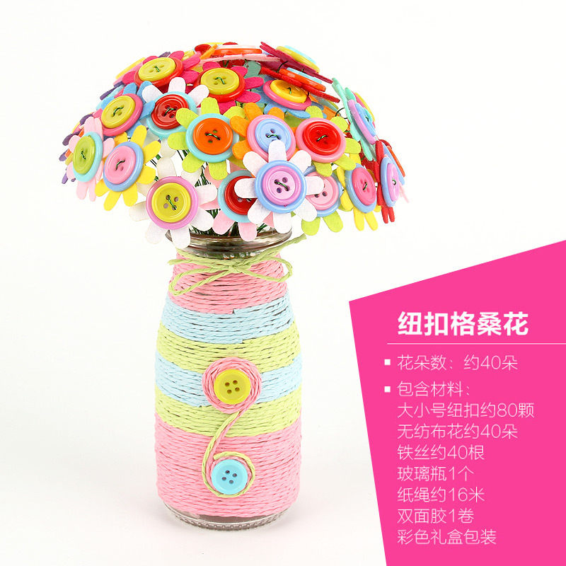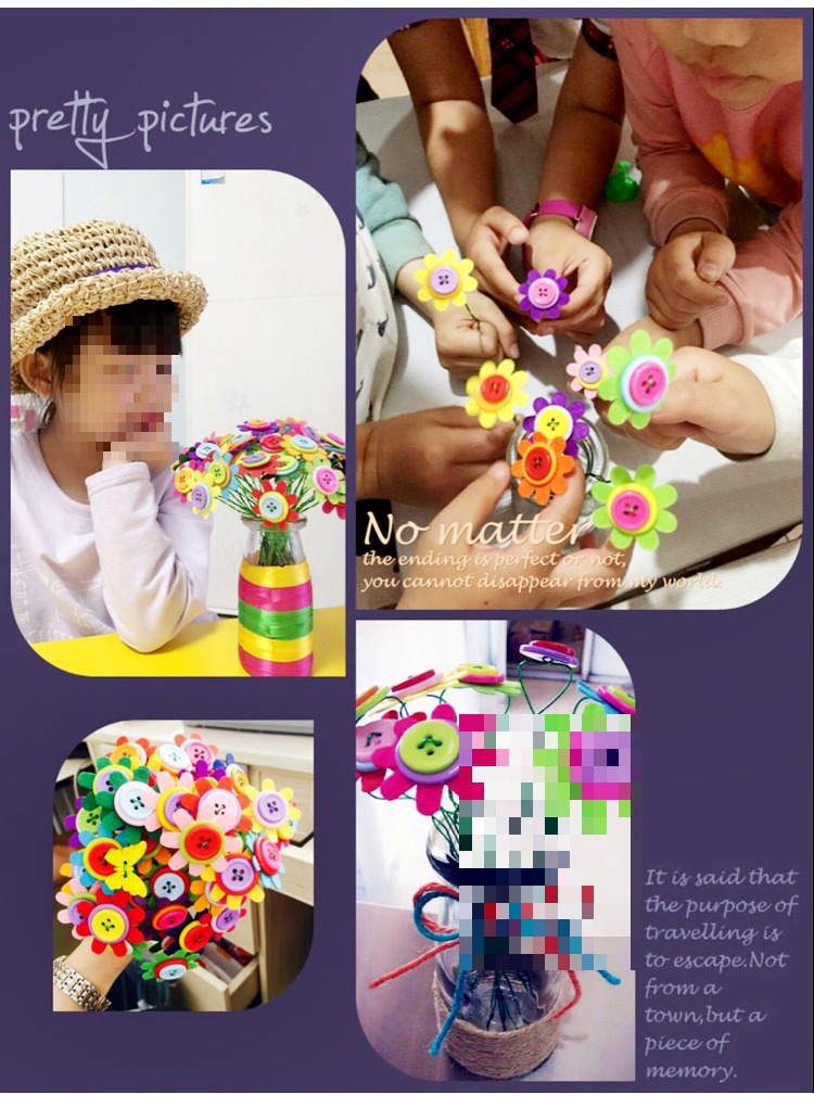 유치원 버튼 꽃 학교 수제 DIY 꽃 부모-어린이 교사의 날 페이스트 축복 꽃다발 소재 가방