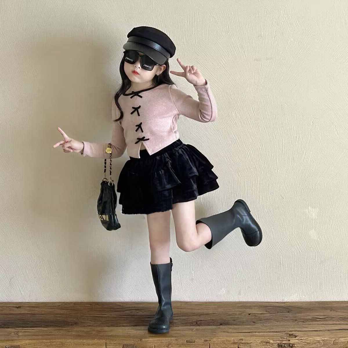 소녀 세트 가을 새 활 니트 바닥 셔츠 플리츠 스커트 2 피스 세트 어린이를위한 머리카락