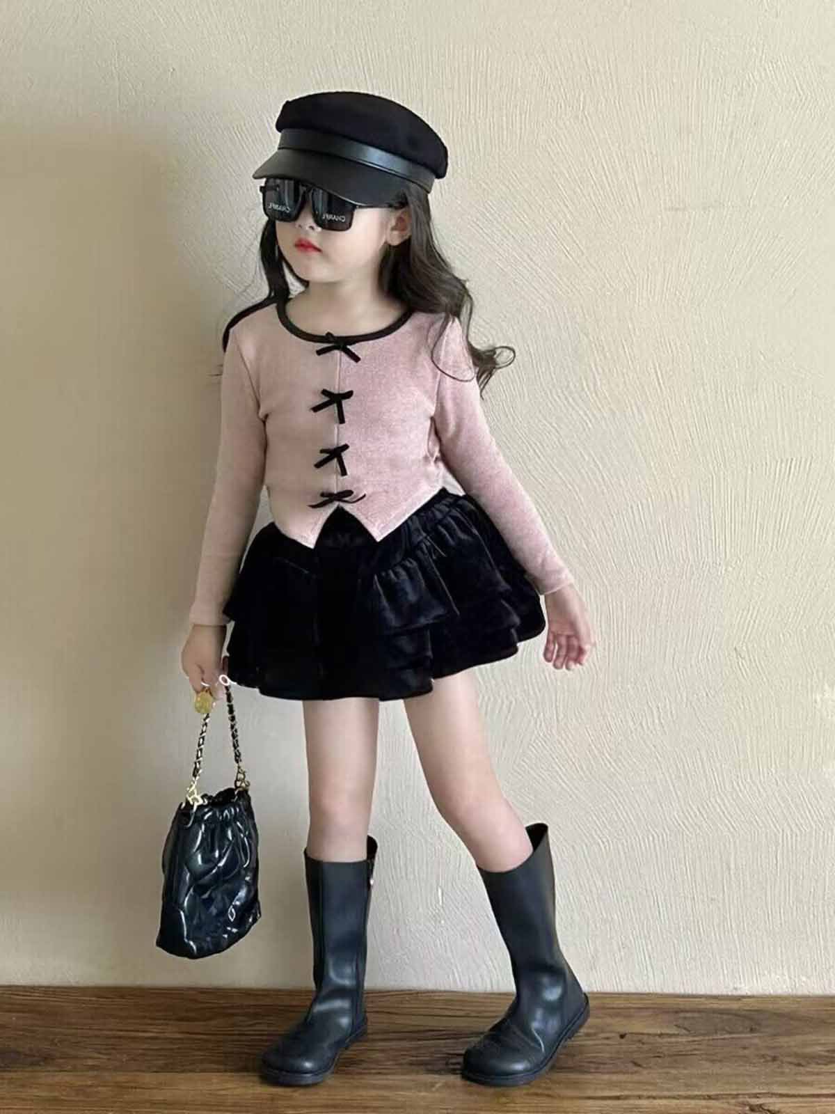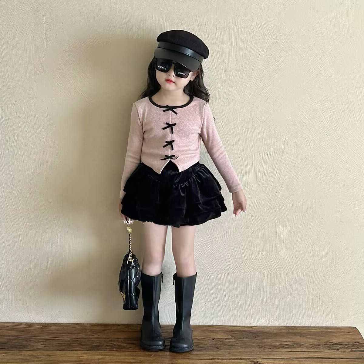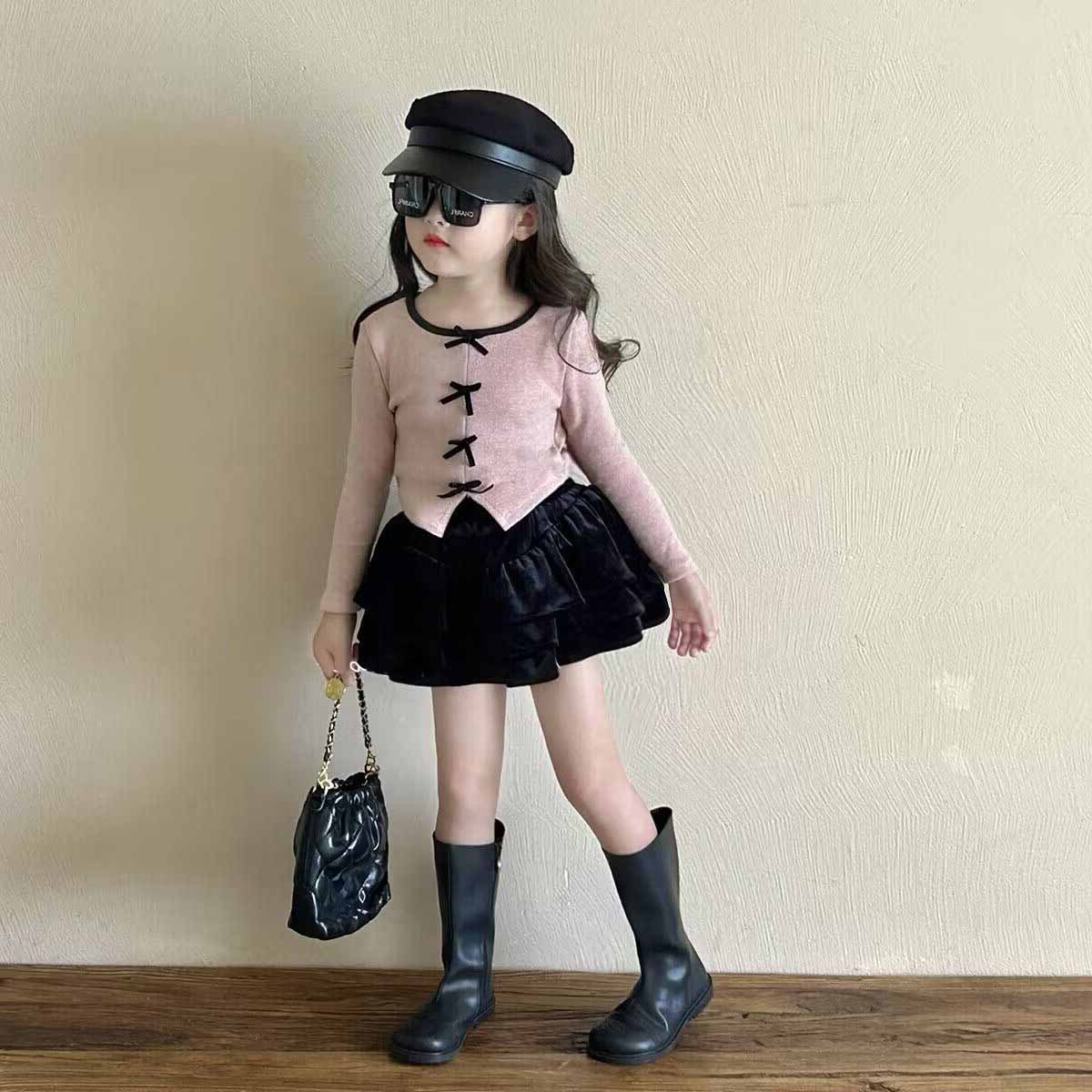 소녀 세트 가을 새 활 니트 바닥 셔츠 플리츠 스커트 2 피스 세트 어린이를위한 머리카락스토어 가기