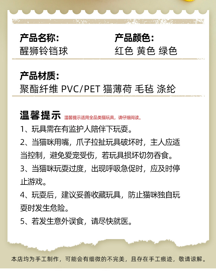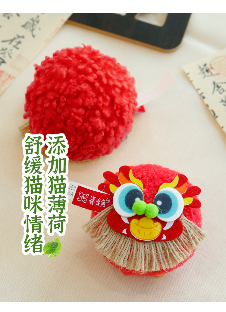 Xidoyu 원래 새로운 중국 스타일 라이온 웨이크 업 벨 볼 캣닙 장난감 물린 저항 고양이 애완 동물 용품