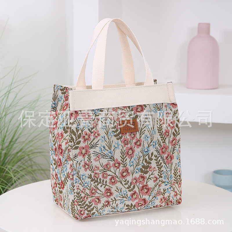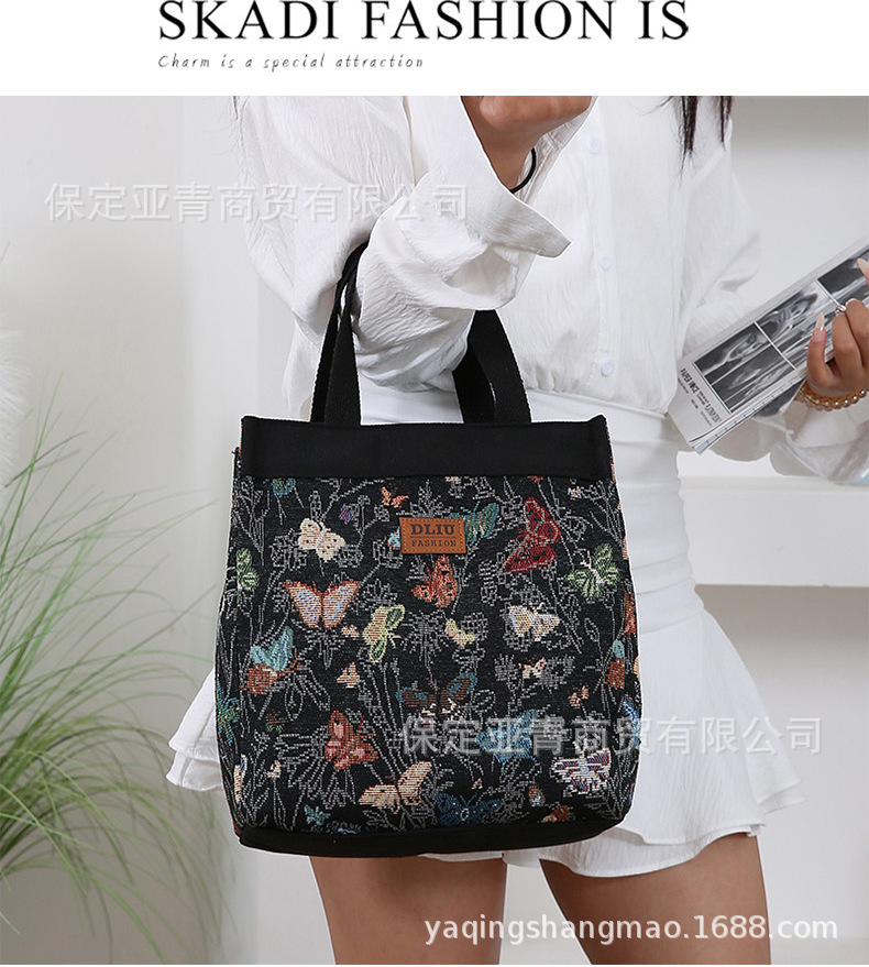 새로운 도착 캔버스 자카드 자수 가방 유행 토트 백 대형 핸드백 예술적 작은 신선한 핸드백 캔버스 가방스토어 가기