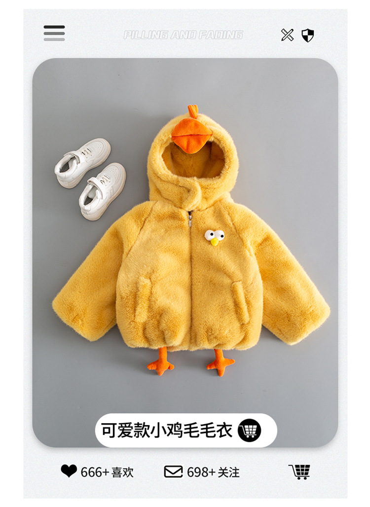 아기용 플러시 스웨터 가을 겨울 옷 병아리 코트 2024 신상 어린이 두꺼운 후드 면옷 트렌디한 아동복스토어 가기