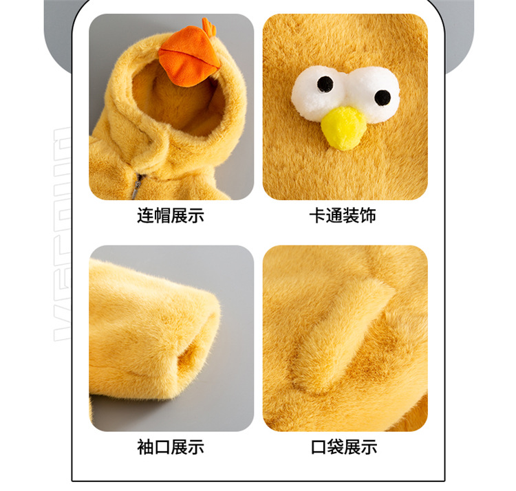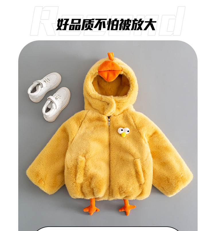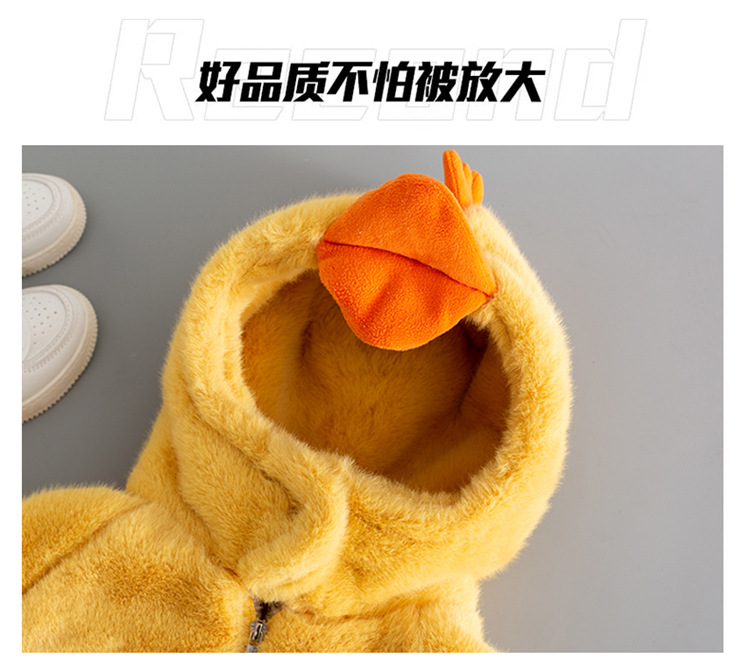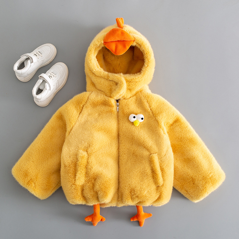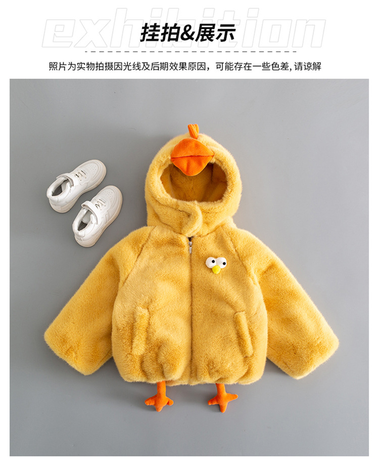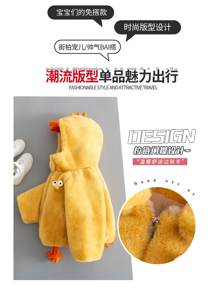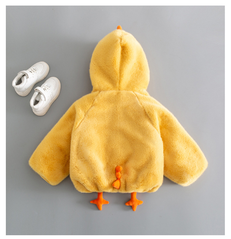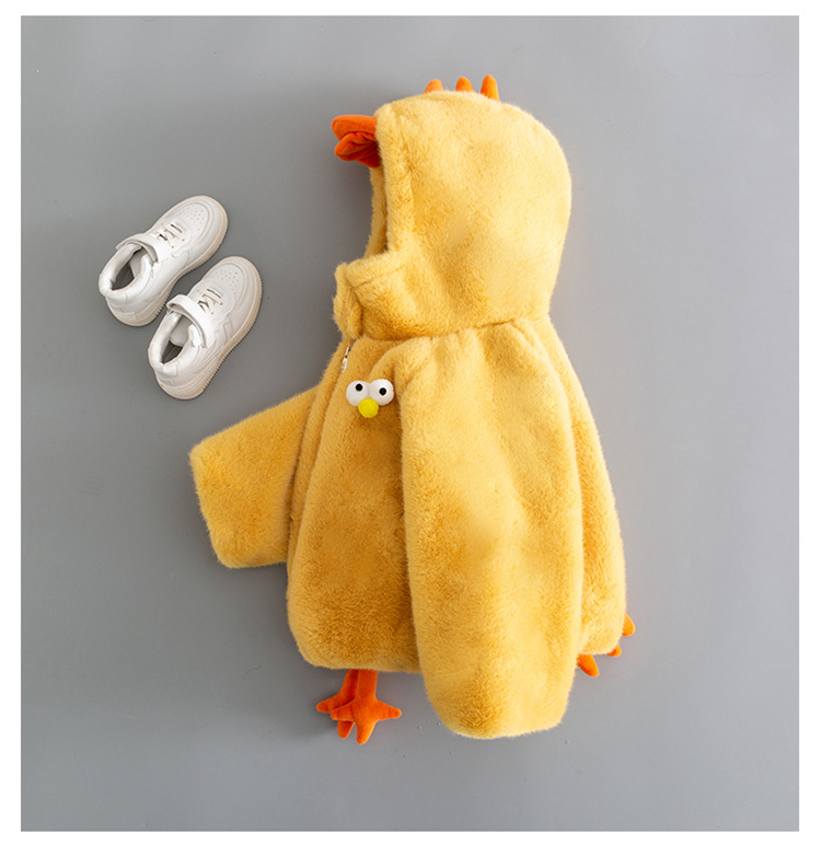 아기용 플러시 스웨터 가을 겨울 옷 병아리 코트 2024 신상 어린이 두꺼운 후드 면옷 트렌디한 아동복