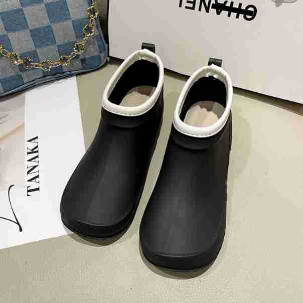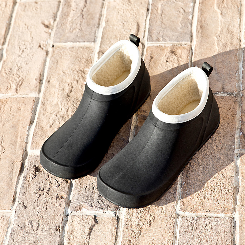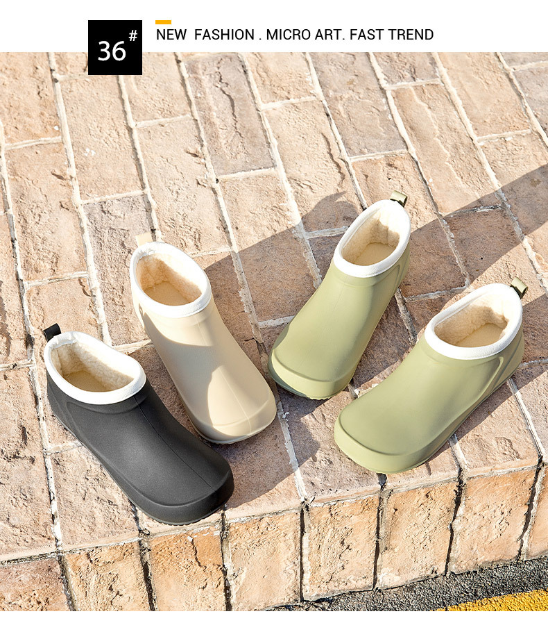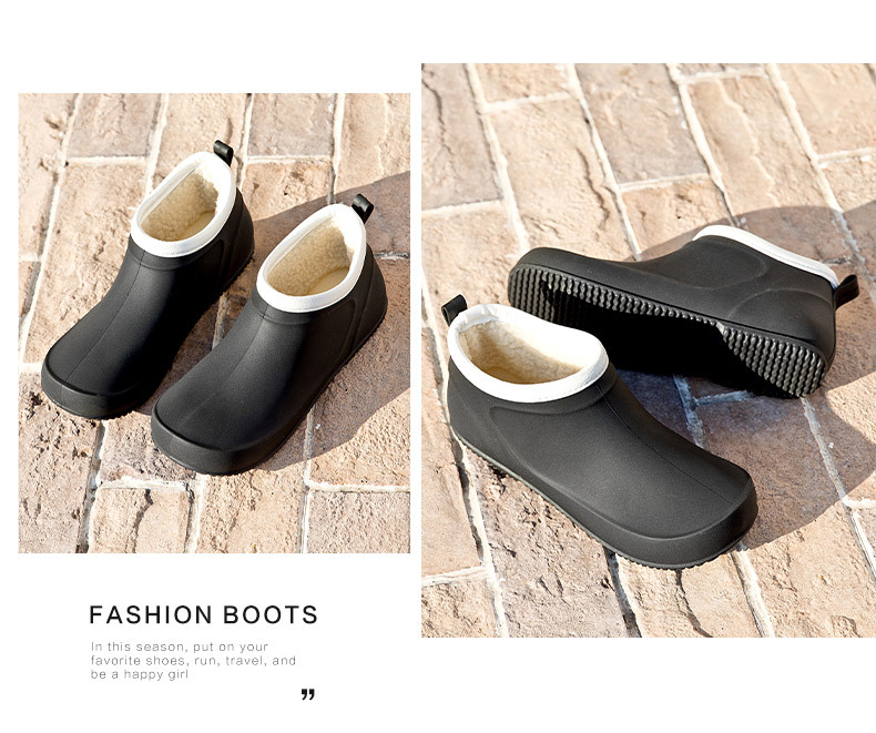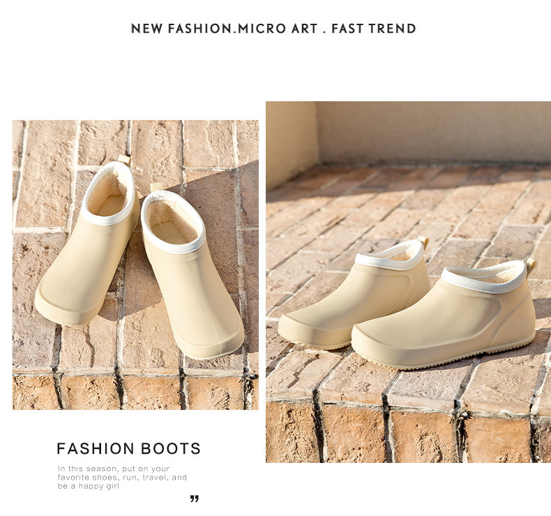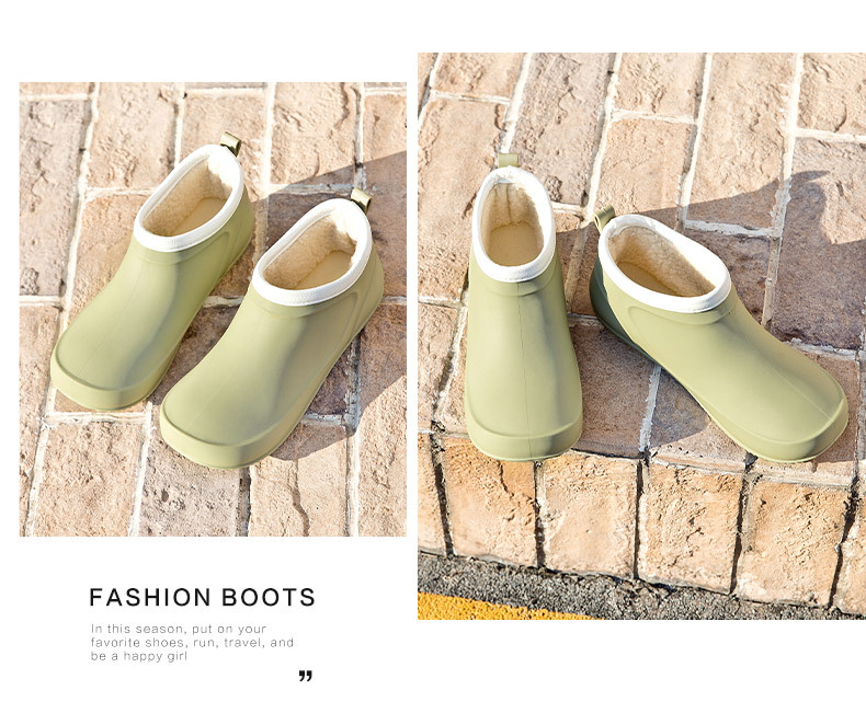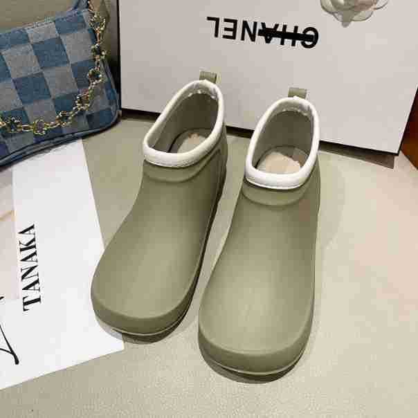 일본과 한국의 뉴 기모 따뜻한 로우 탑 레인 부츠 여성용 미끄럼 방지 경량 방수 신발 짧은 배럴 주방 작업 비 부츠 고무 신발