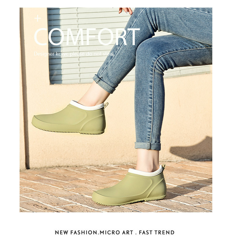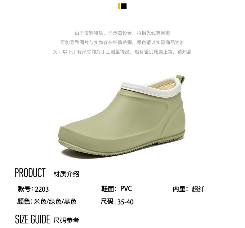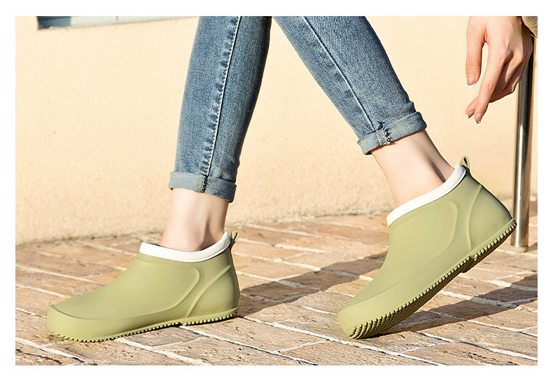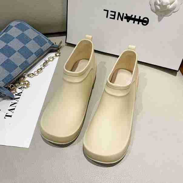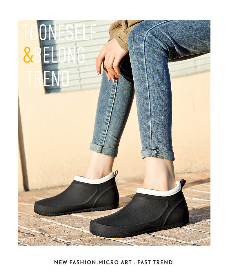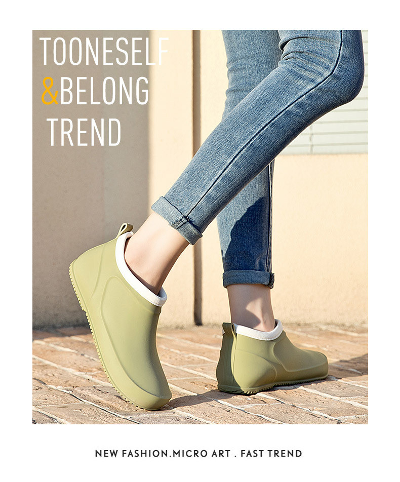 일본과 한국의 뉴 기모 따뜻한 로우 탑 레인 부츠 여성용 미끄럼 방지 경량 방수 신발 짧은 배럴 주방 작업 비 부츠 고무 신발