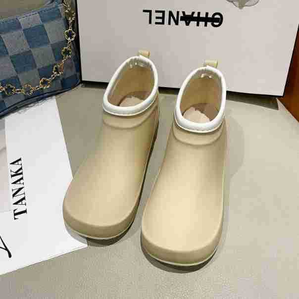일본과 한국의 뉴 기모 따뜻한 로우 탑 레인 부츠 여성용 미끄럼 방지 경량 방수 신발 짧은 배럴 주방 작업 비 부츠 고무 신발스토어 가기