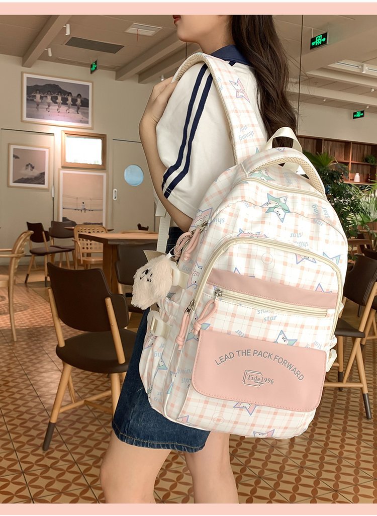 스쿨백 여성 한국식 고가격자 무늬는 5 · 6 학년 초등학생용 대용량 배낭 인쇄스토어 가기