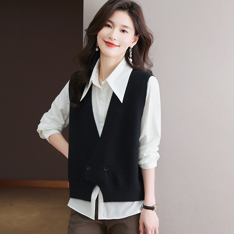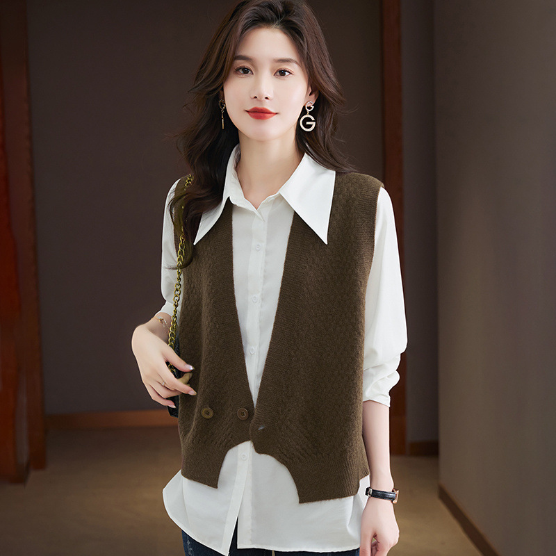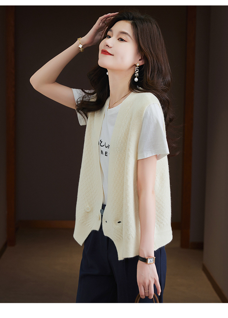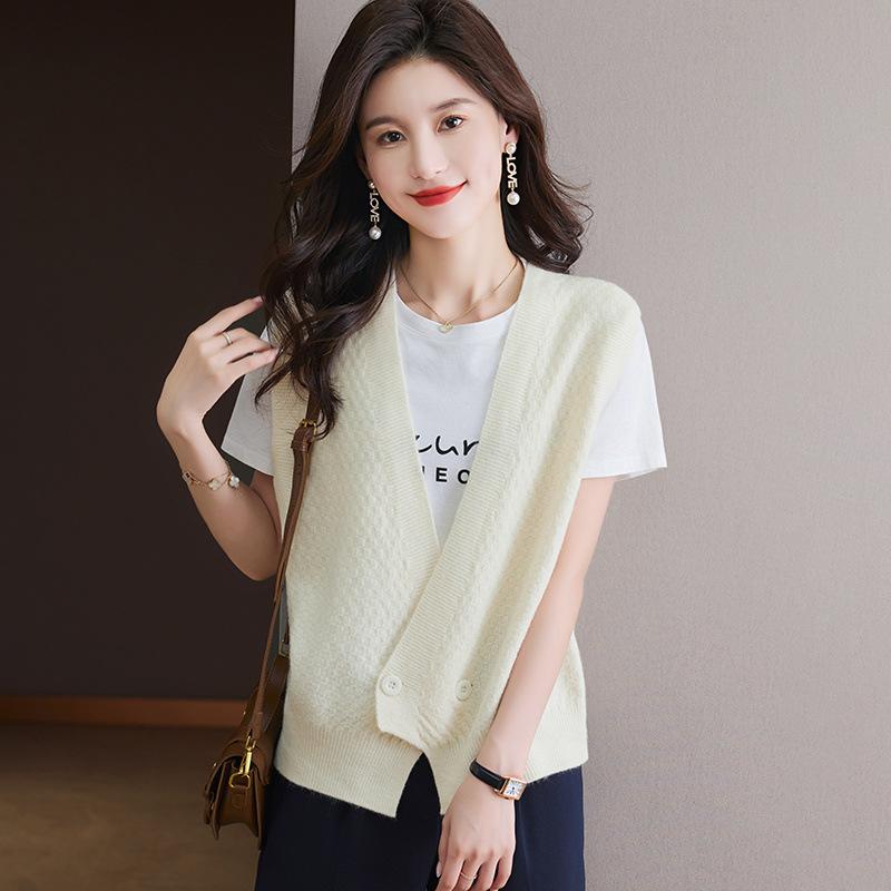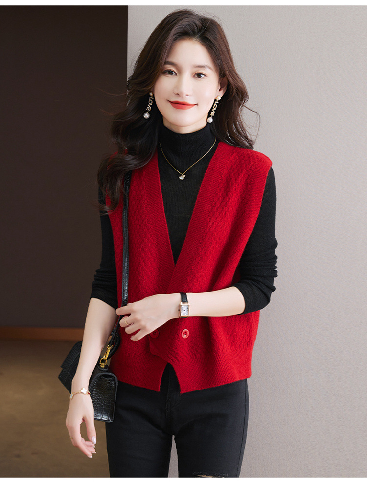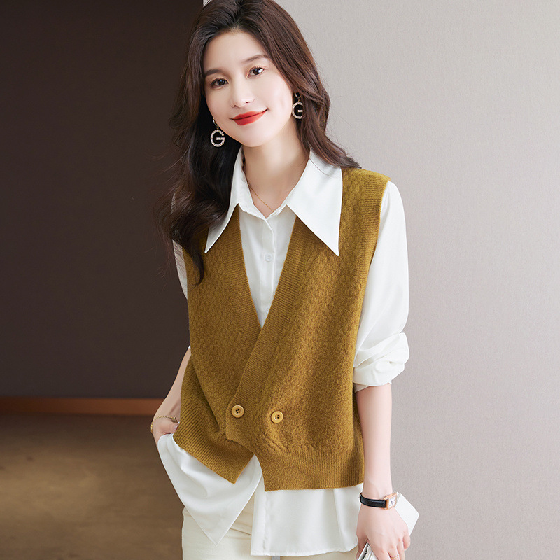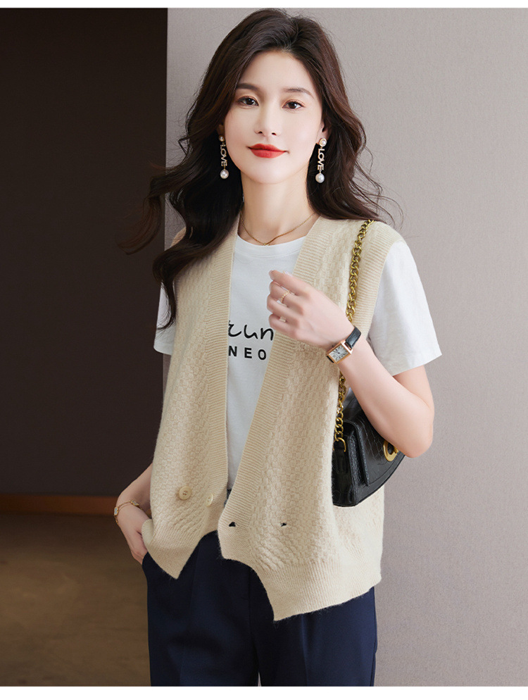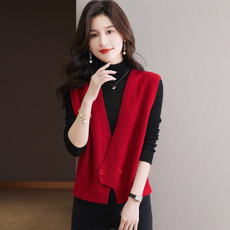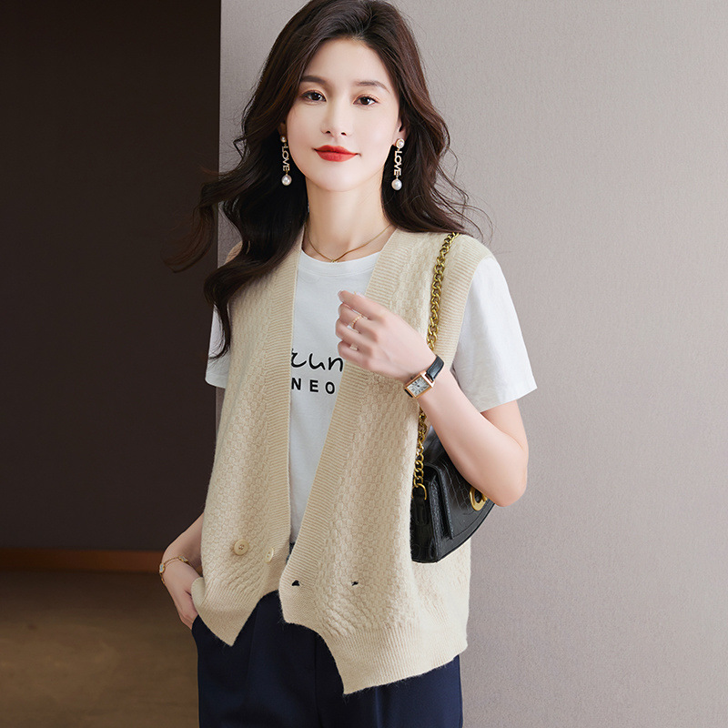 외부 민소매 니트 카디건 최고 여자 봄과 가을 올 매치 루즈 울 스택 조끼 외부 웨이스트 코트 조끼스토어 가기