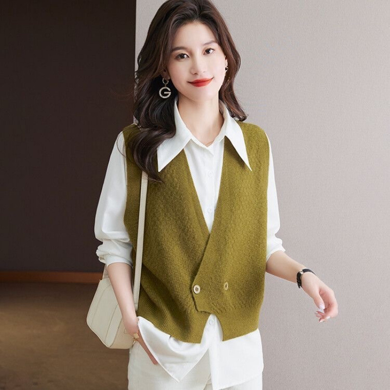 외부 민소매 니트 카디건 최고 여자 봄과 가을 올 매치 루즈 울 스택 조끼 외부 웨이스트 코트 조끼
