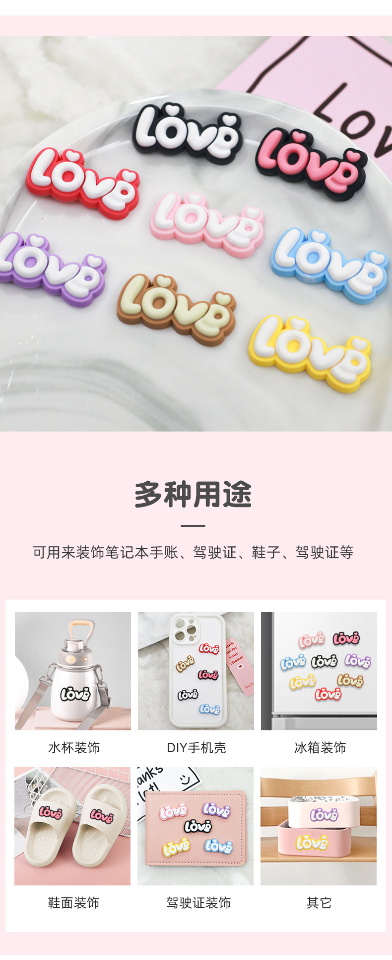 만화 컬러 러브 레터 스티커 PVC 소프트 고무 액세서리 DIY 휴대 전화 케이스 슬리퍼 ipad 쉘 물 컵 패치스토어 가기