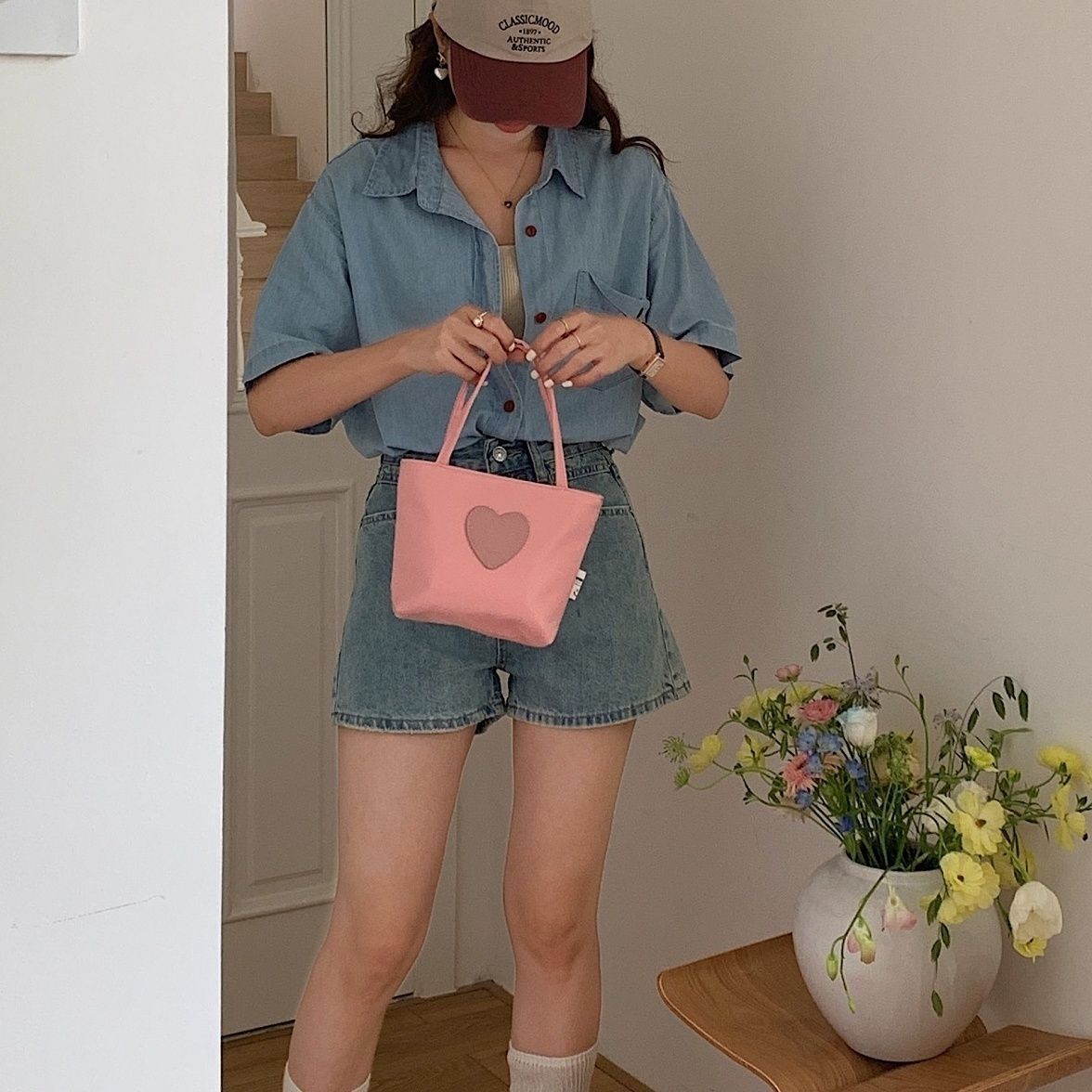인스 나일론 미니 친환경 천가방 소형 가방 휴대폰 가방 여성용 직장 가방 귀여운 핸드백 소형 사각 가방스토어 가기
