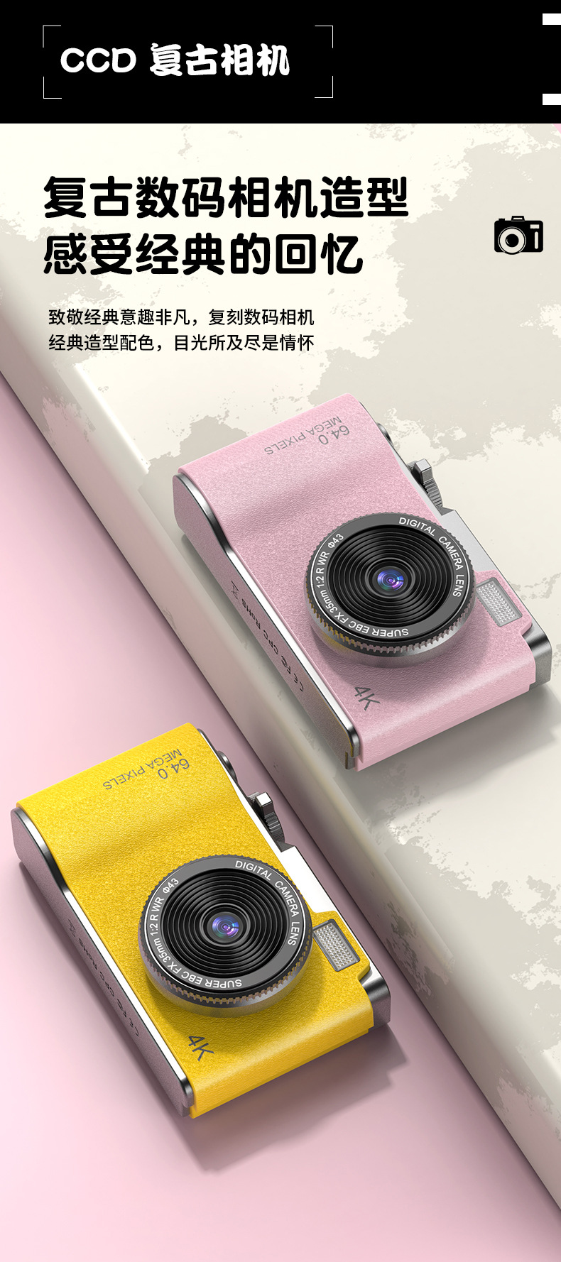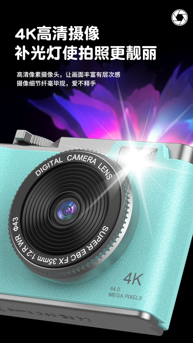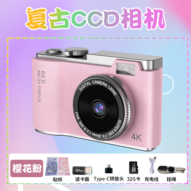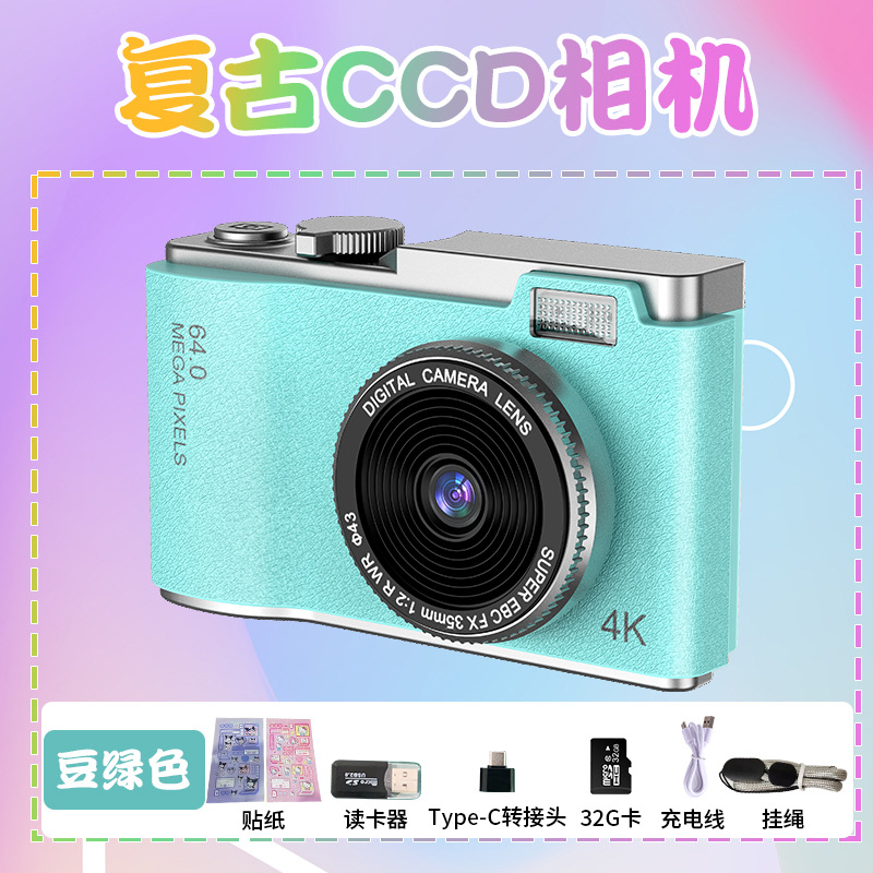 새로운 국경 CCD 패션 복고풍 어린이 카메라 4K HD 카메라 학생 어린이 휴대용 디지털 카메라스토어 가기