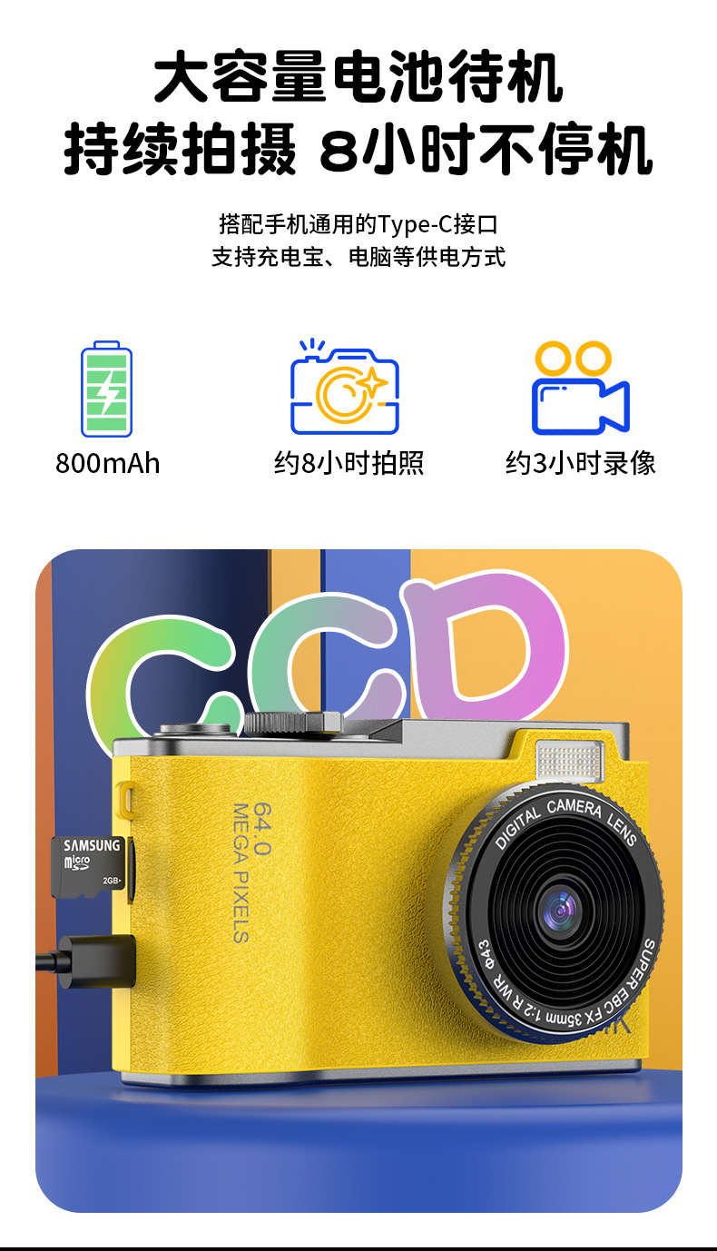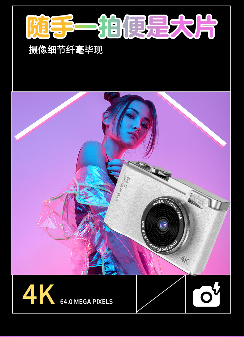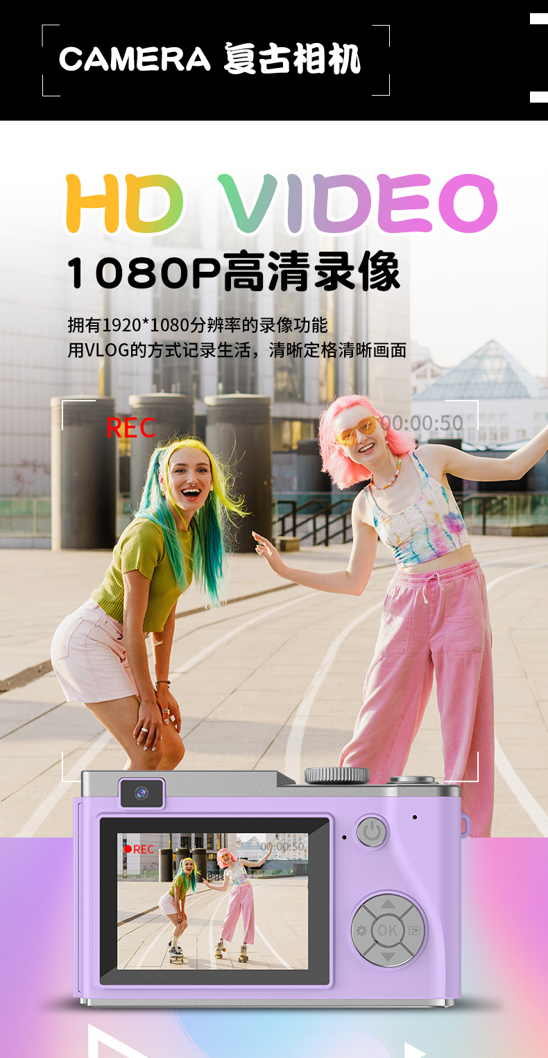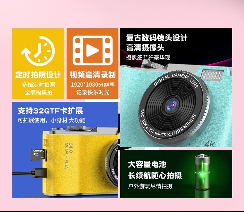 새로운 국경 CCD 패션 복고풍 어린이 카메라 4K HD 카메라 학생 어린이 휴대용 디지털 카메라