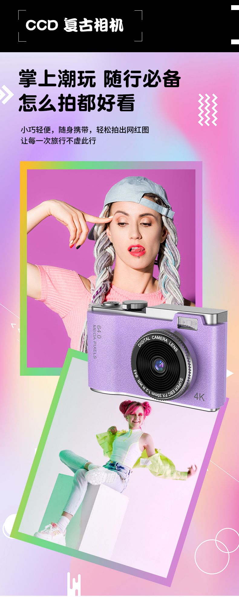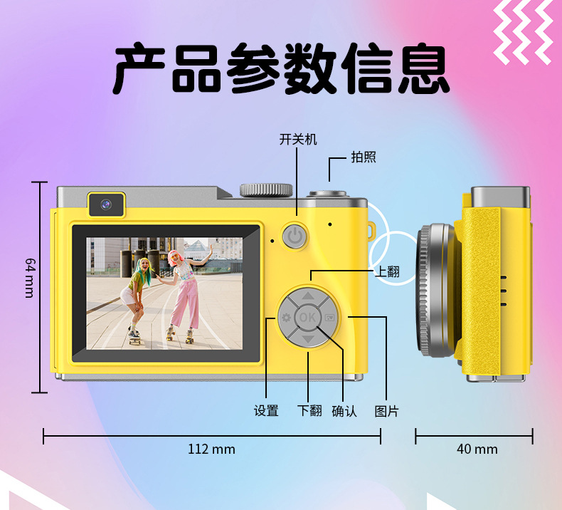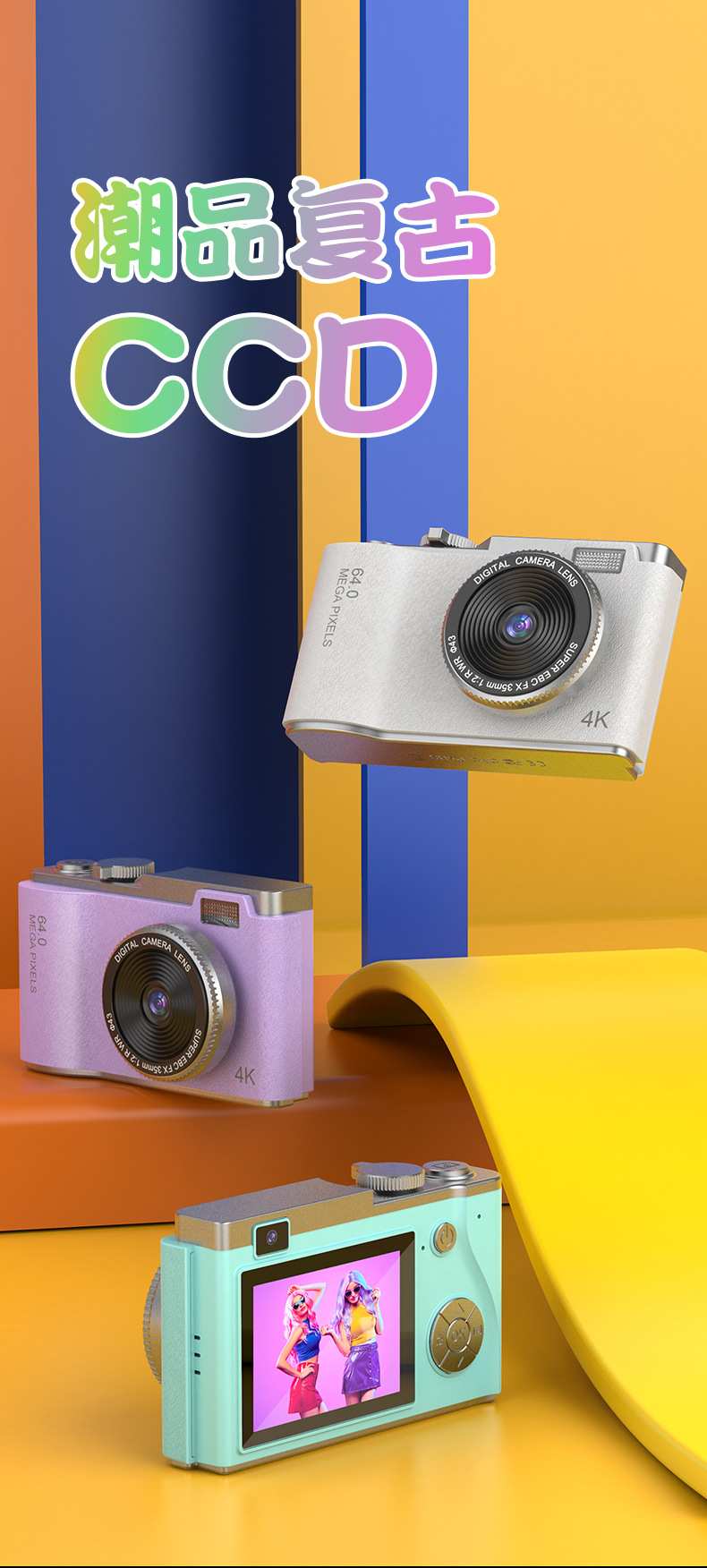 새로운 국경 CCD 패션 복고풍 어린이 카메라 4K HD 카메라 학생 어린이 휴대용 디지털 카메라