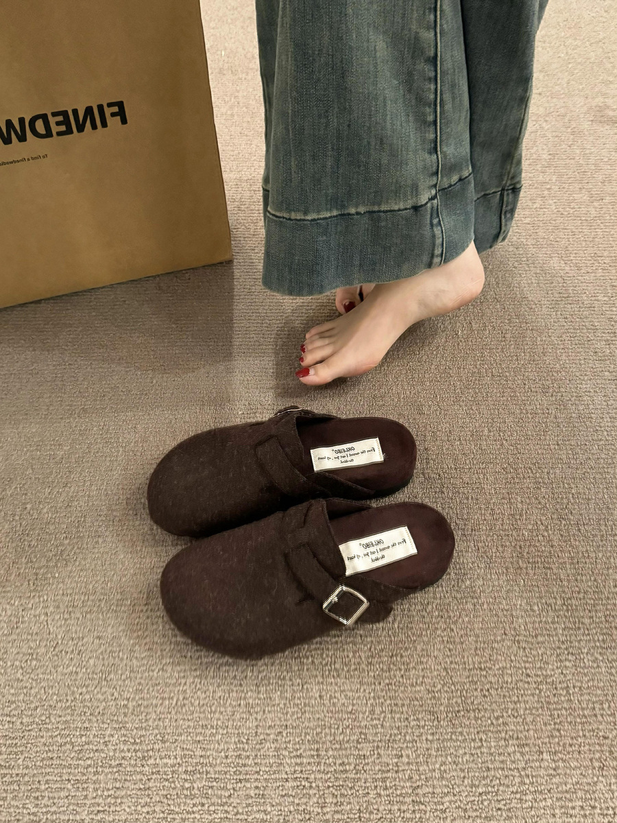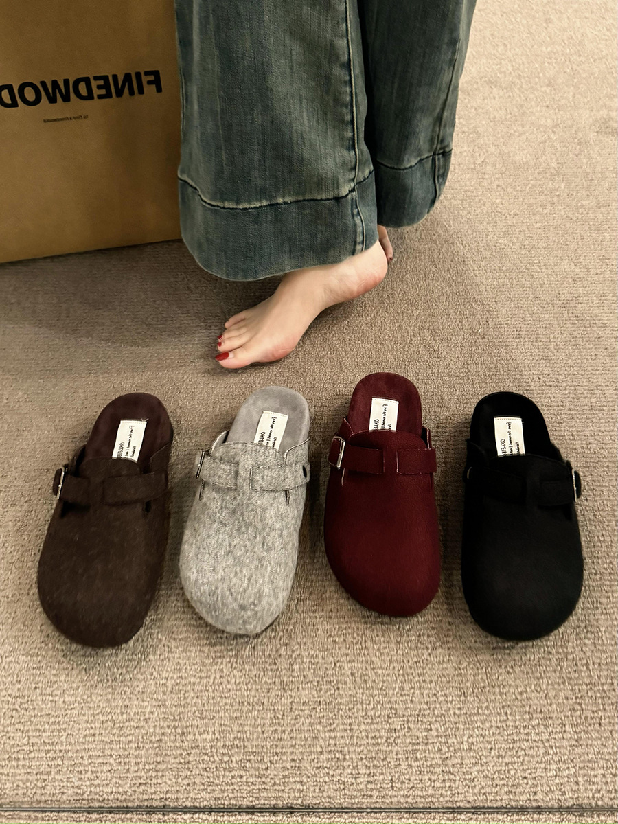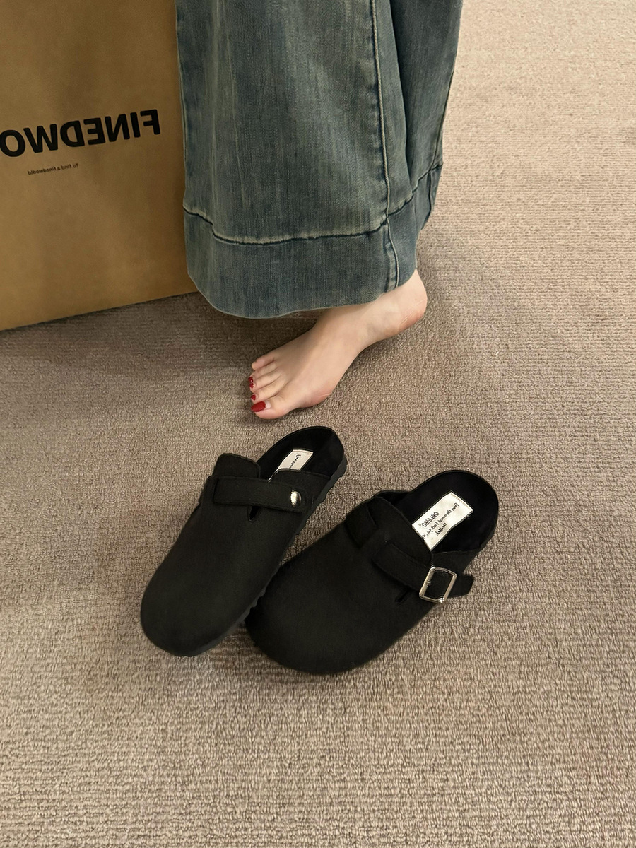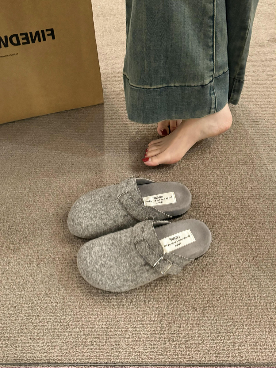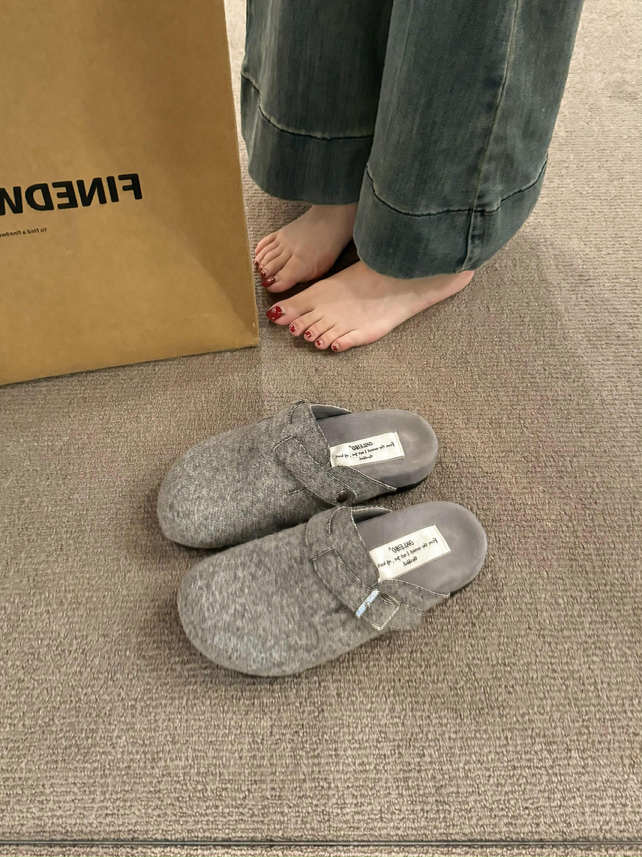 두꺼운 회색 Birkenan 신발 여성의 가을과 겨울 새로운 한국식 틈새 복고풍 Birkenan 슬립 온 로퍼 커버 하프 슬리퍼