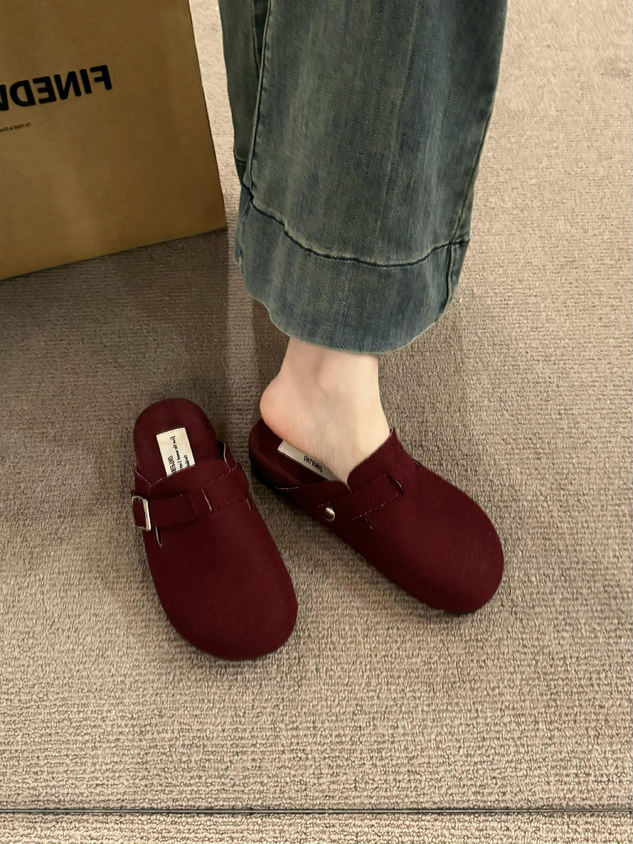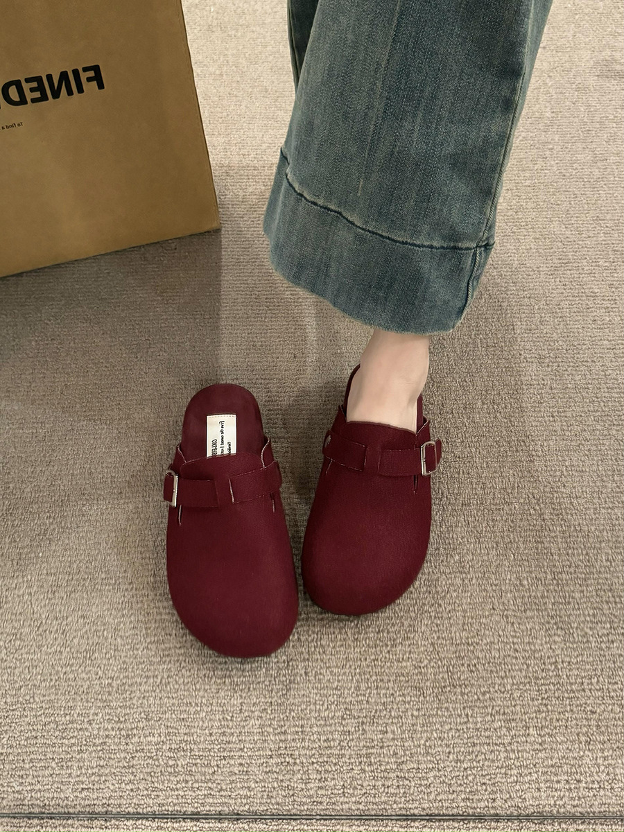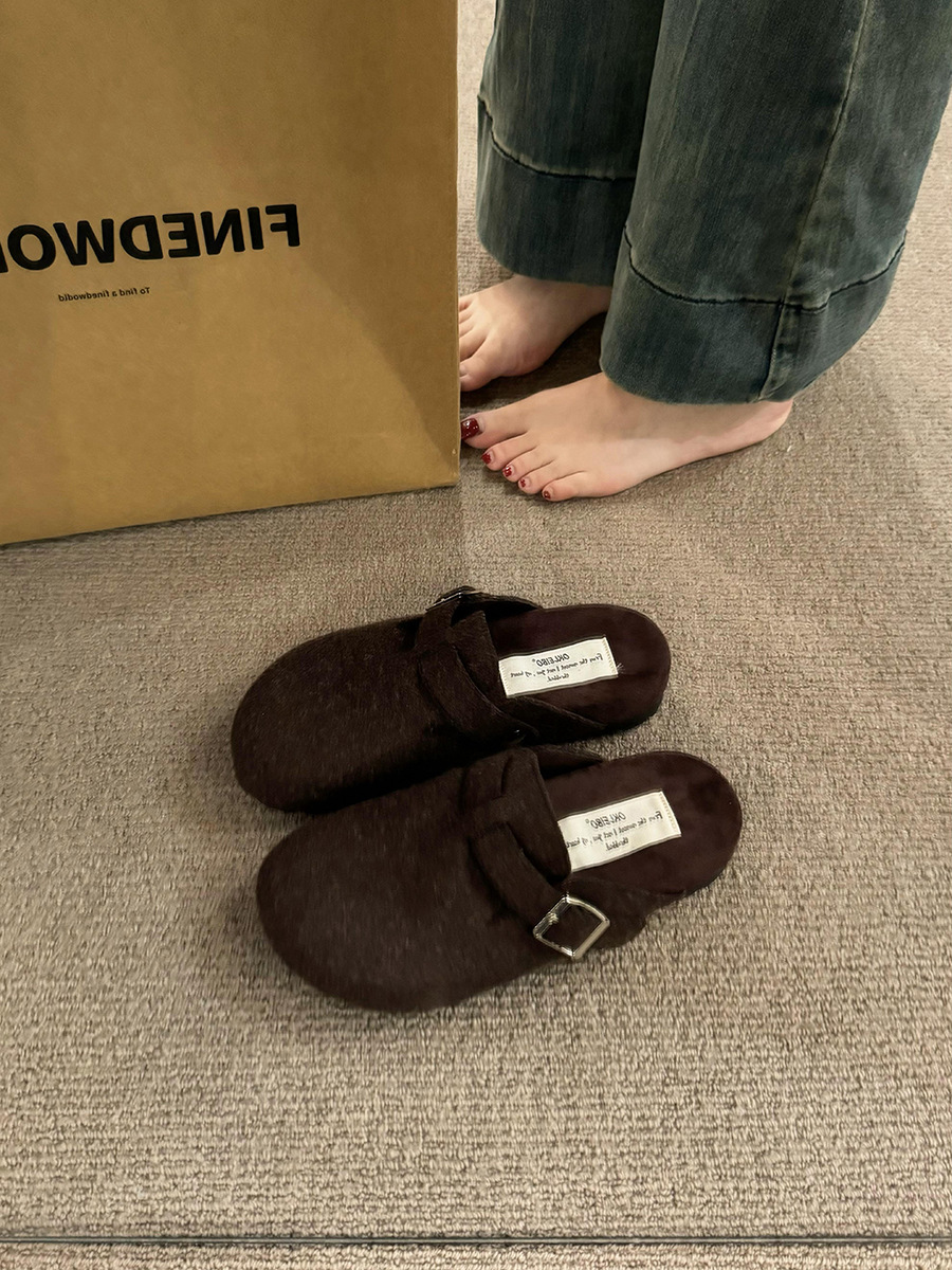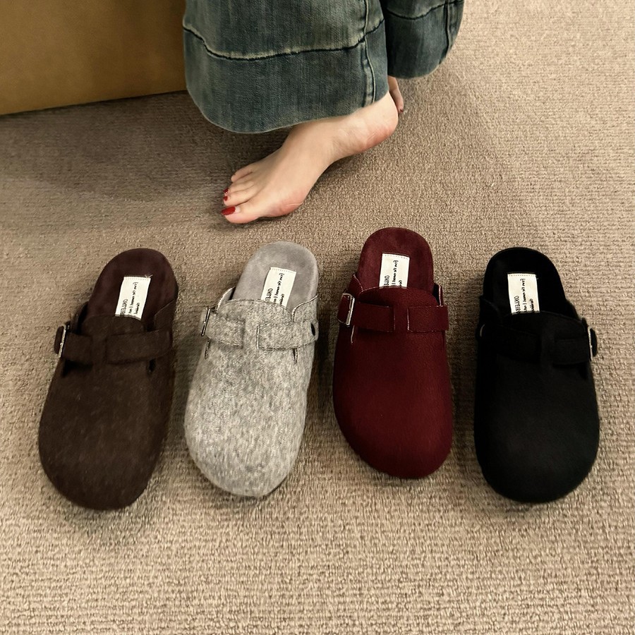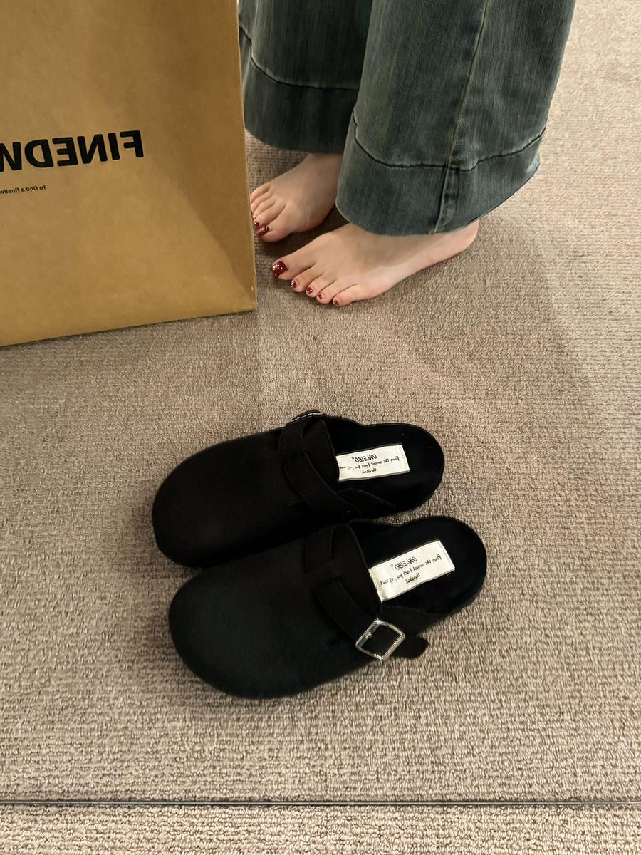 두꺼운 회색 Birkenan 신발 여성의 가을과 겨울 새로운 한국식 틈새 복고풍 Birkenan 슬립 온 로퍼 커버 하프 슬리퍼