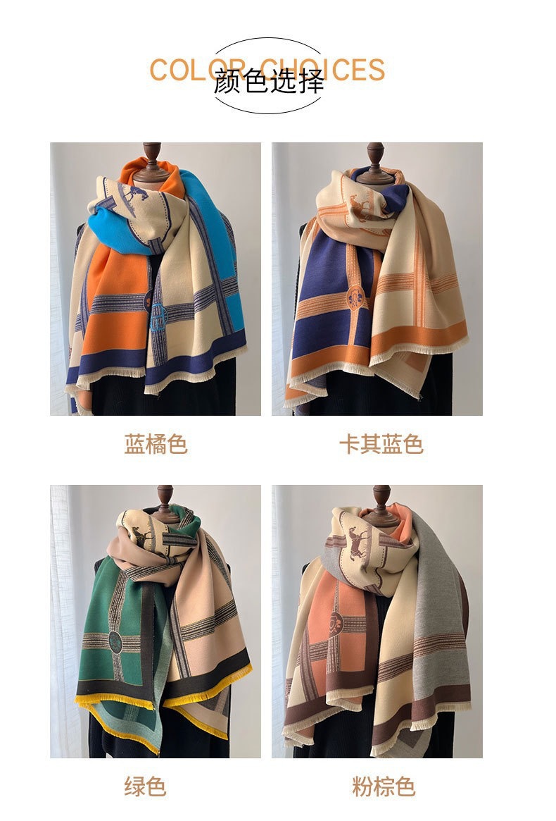 2023 새로운 색상 매칭 포니 스카프 여성의 가을 및 겨울 올 매치 캐시미어 유럽과 미국 스타일 따뜻한 목 따뜻한 목도리